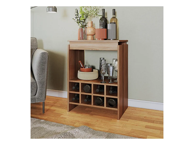 Console - Meuble BAR Châtaignier Rangement 8 Bouteilles FLOAT L 53.5 H 72 P 35 cm