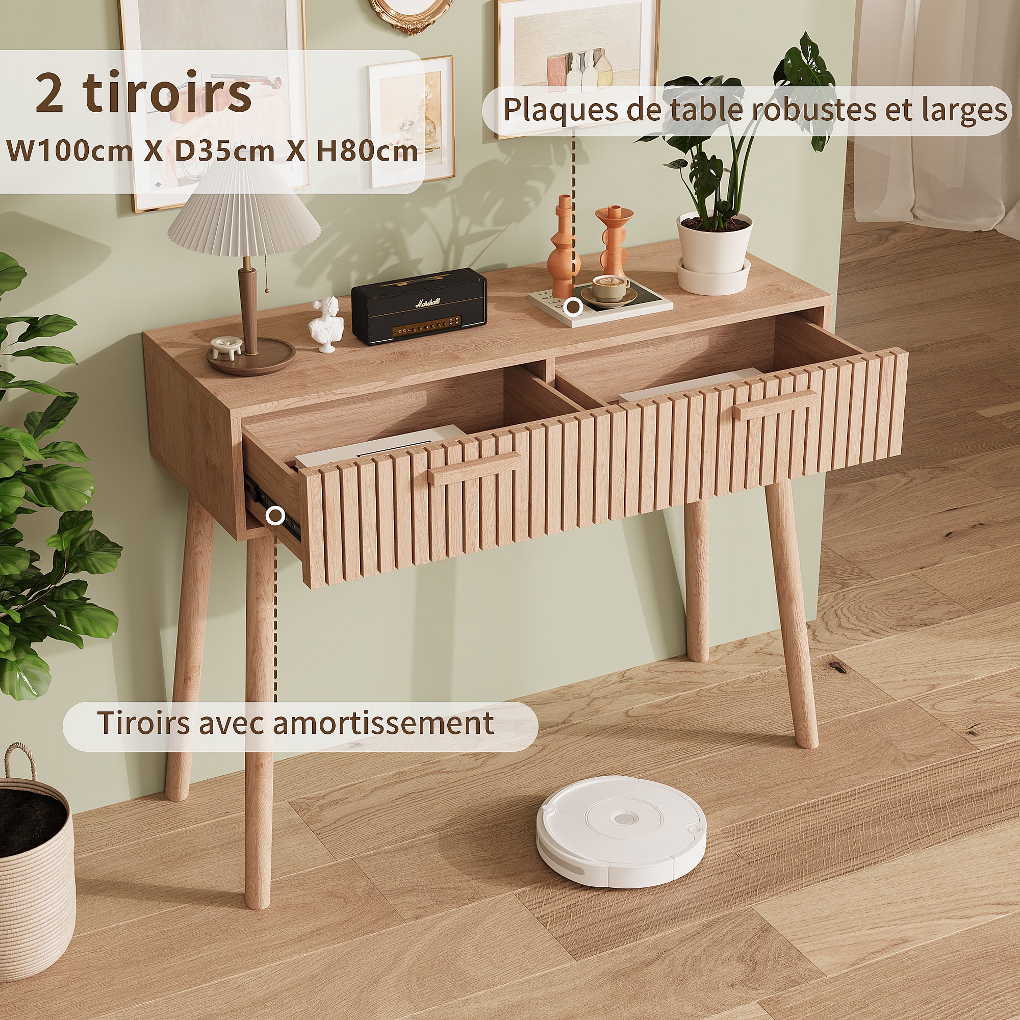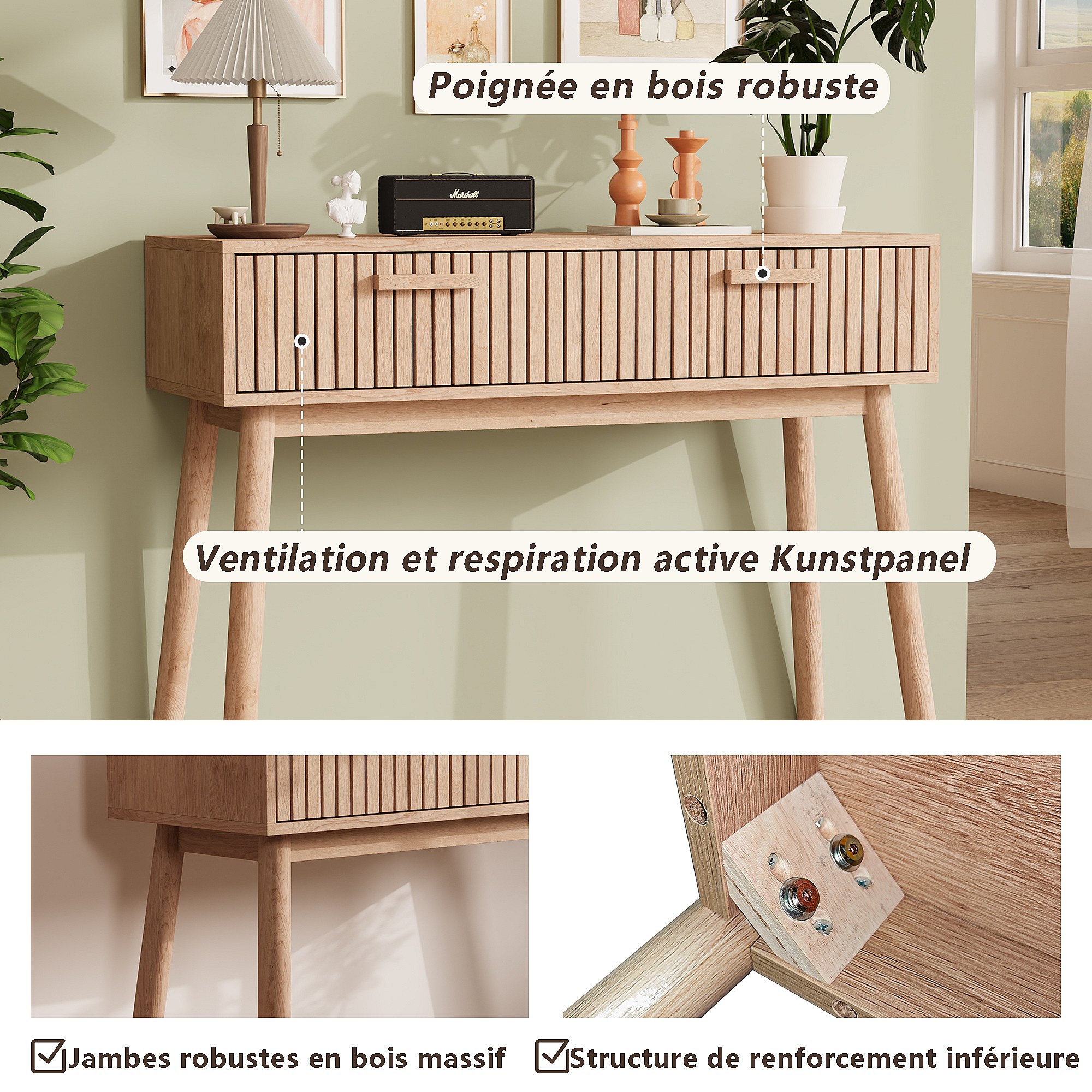 Console Meuble, Console d'entrée avec 2 Tiroirs, Meuble d'Entrée avec Rangement Tables d’Entrée en Bois de Ferme, Style Boho