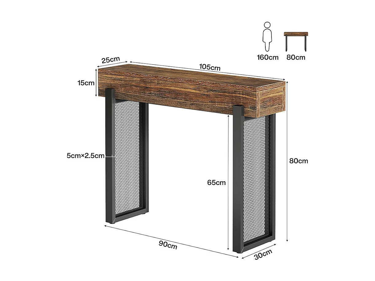 Console Meuble , Console d’entrée industrielle, Tables d'entrée de 105 cm Table de canapé étroite pour Salon, Marron Noir