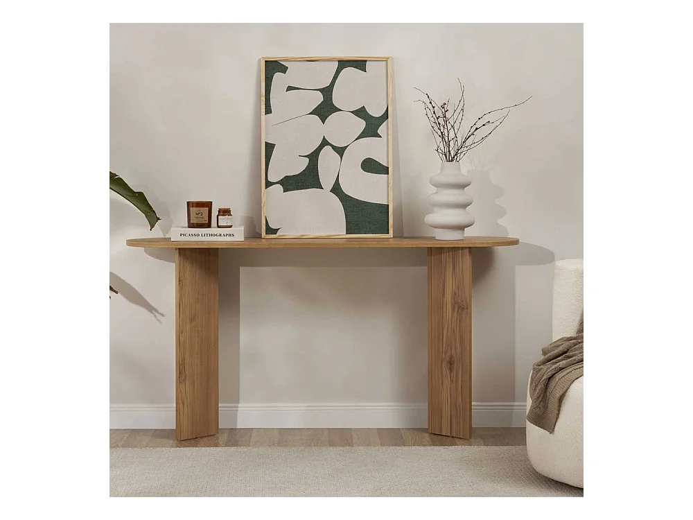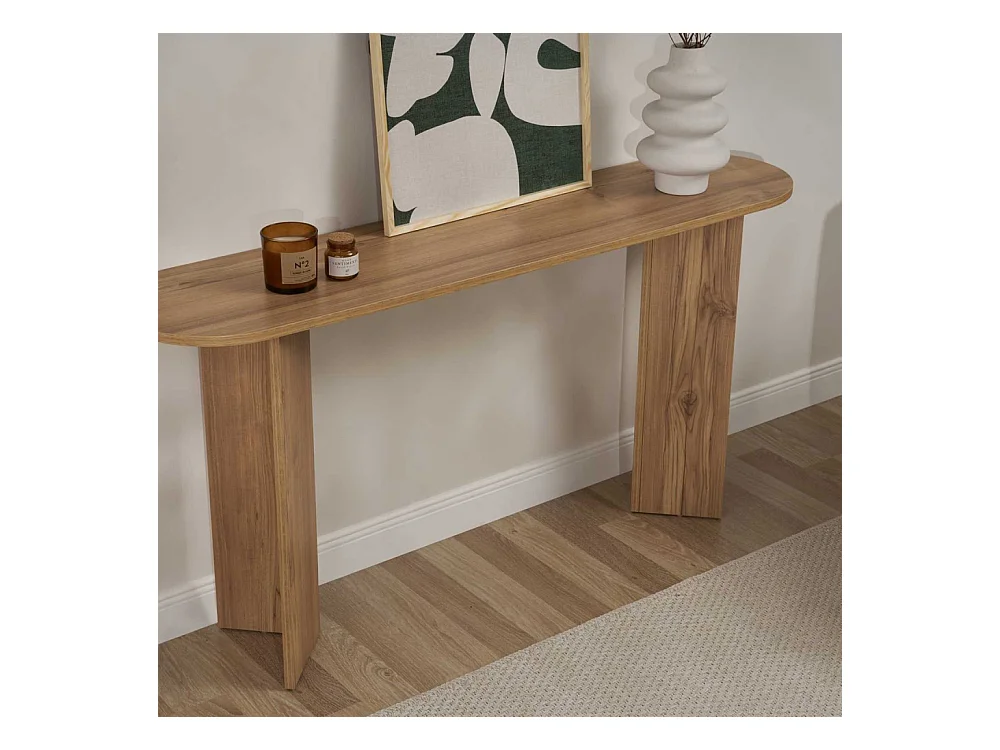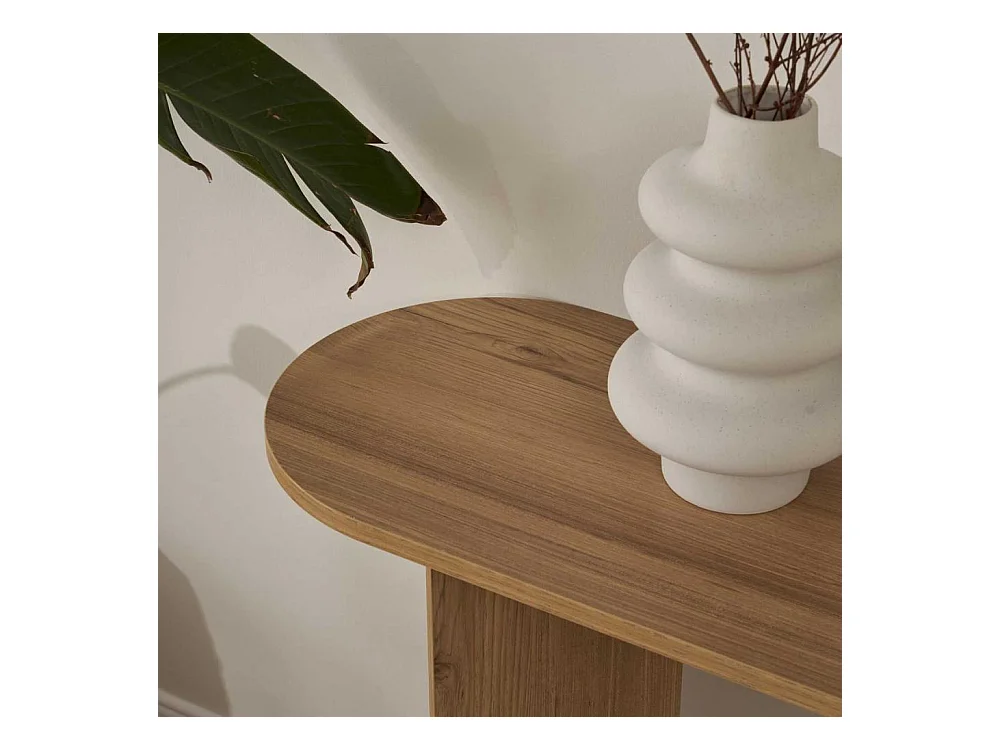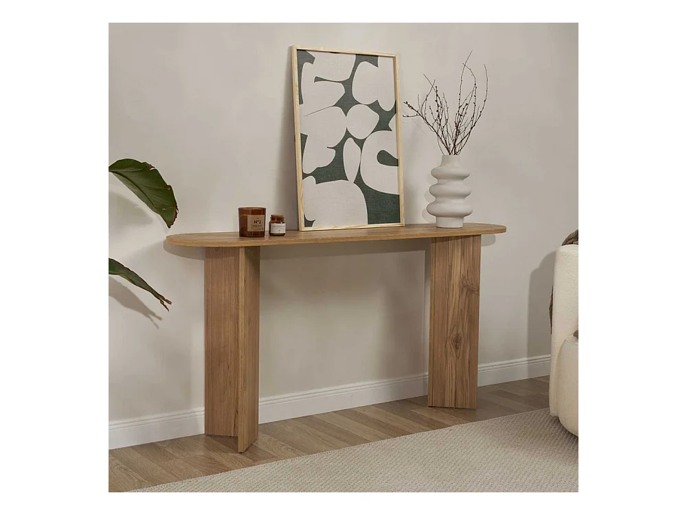 Now's Home - Console Ovale Effet Travertin Naturel 110x40x80cm Inaya