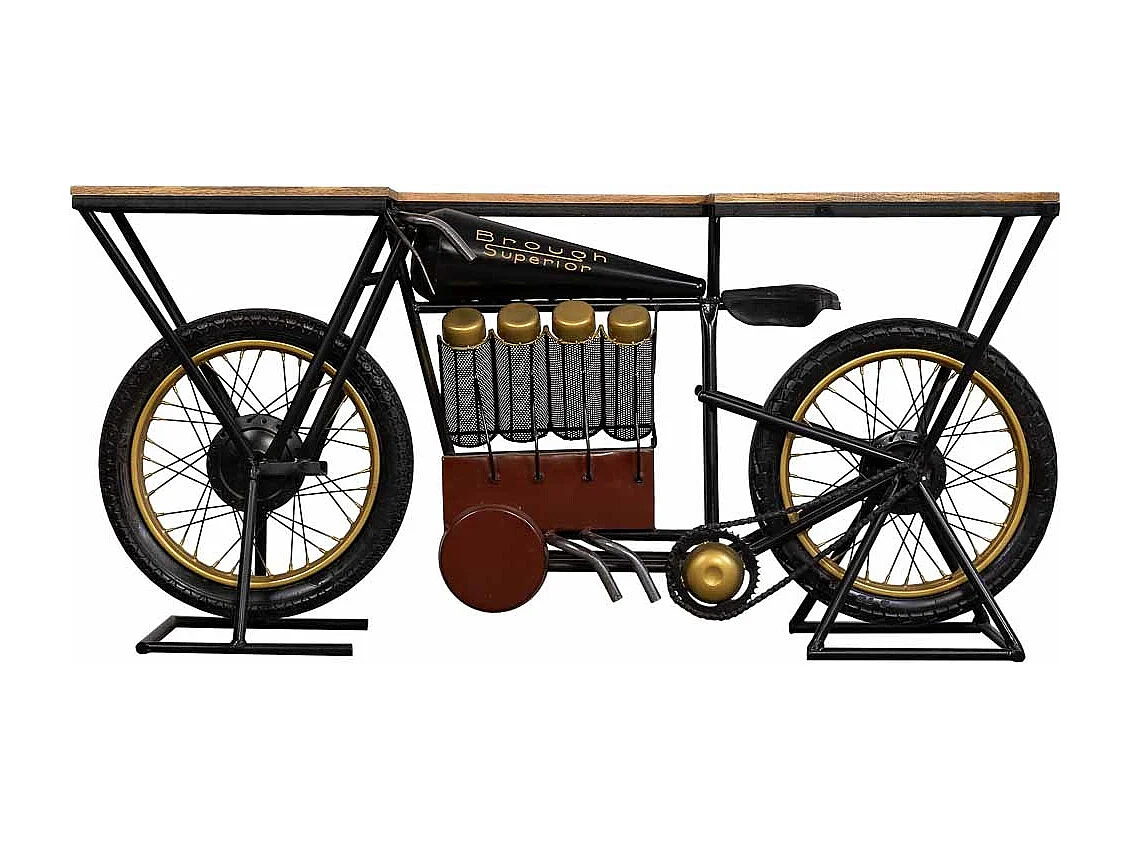 Console moto en bois et métal noir 183x43x86h