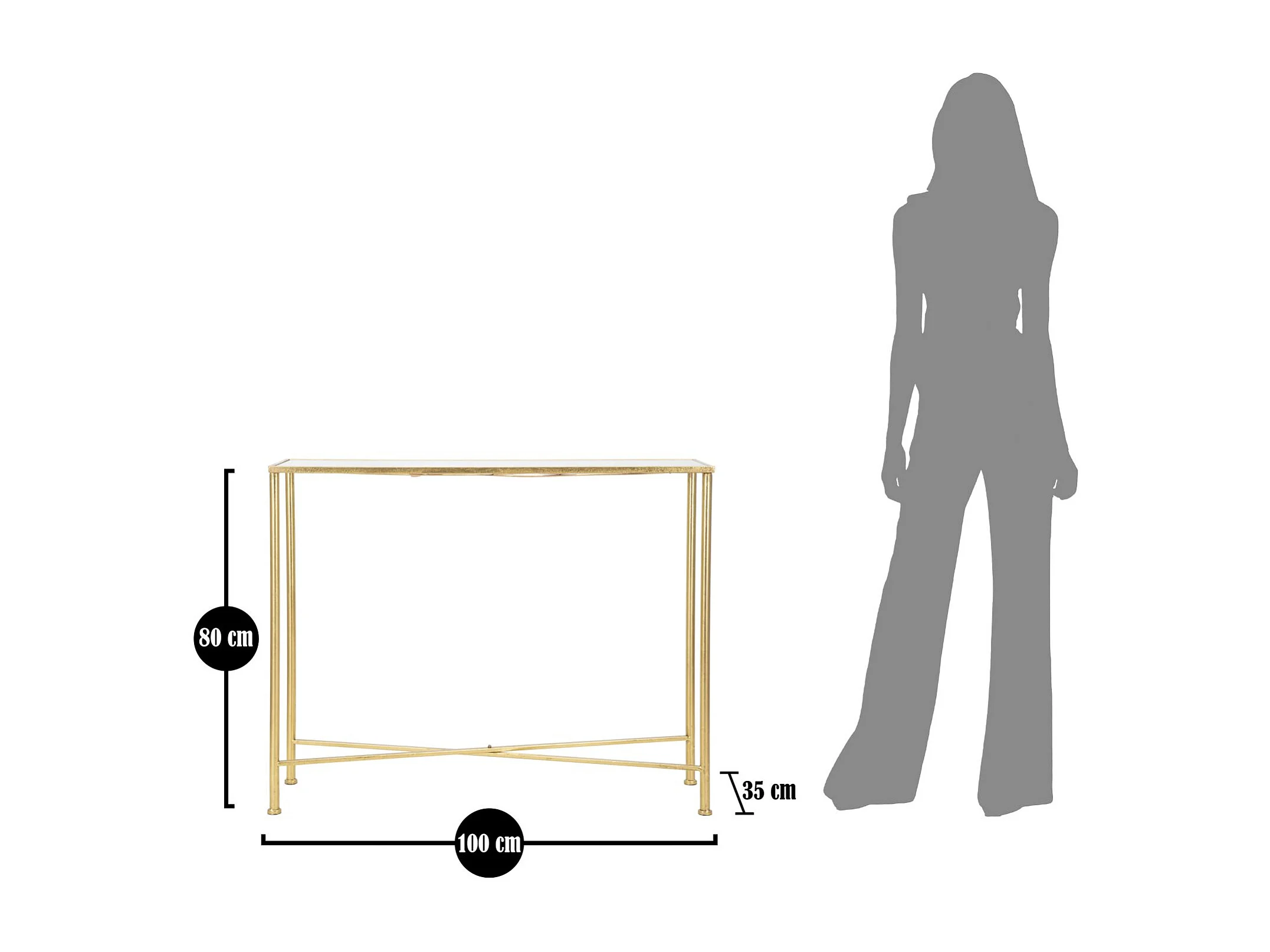 Console 35x100x75 cm or tensio 2 étages métal