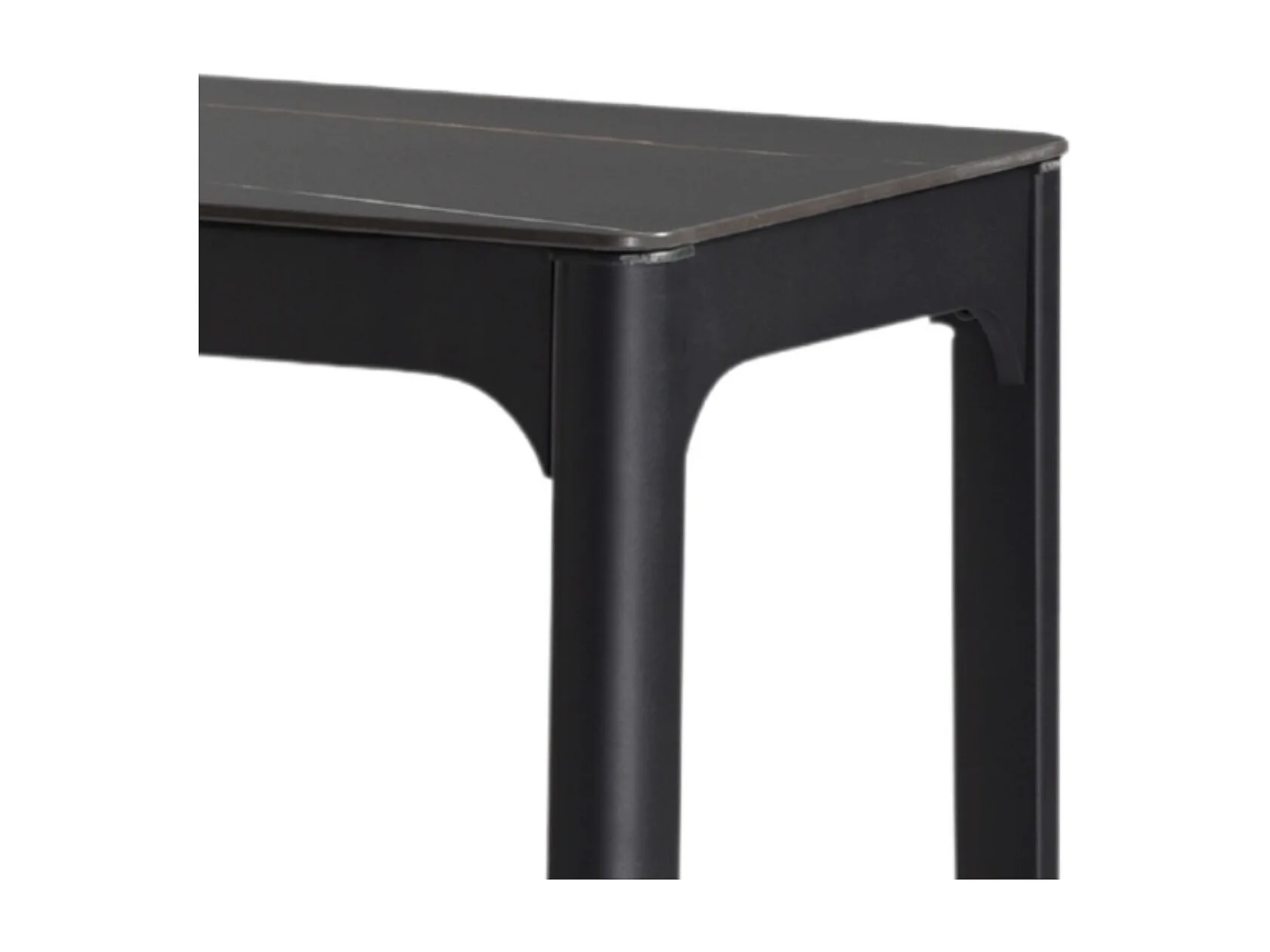 Console plateau MDF placage céramique noir marbré et piètement en acier laqué anthracite - SLEEK