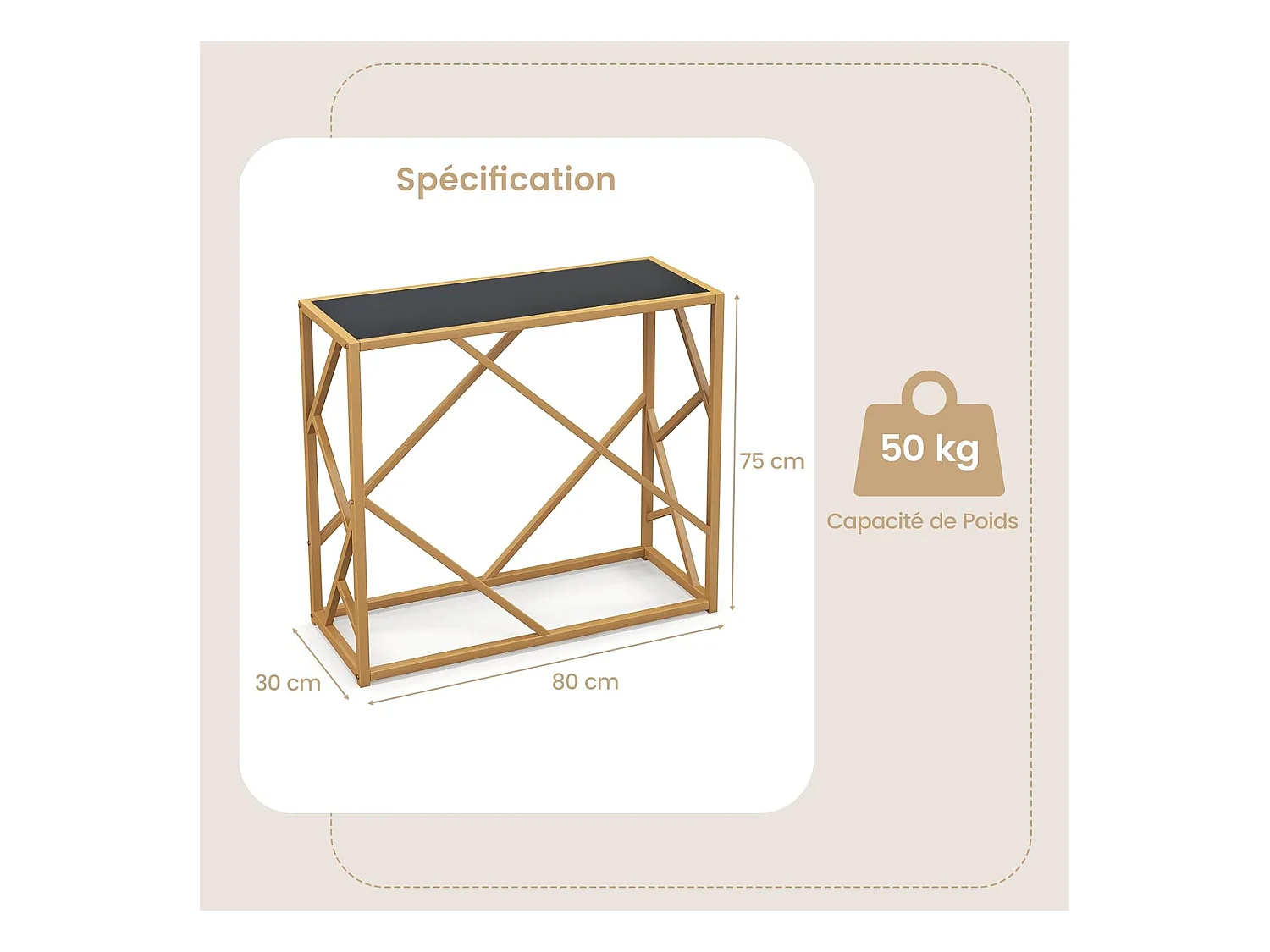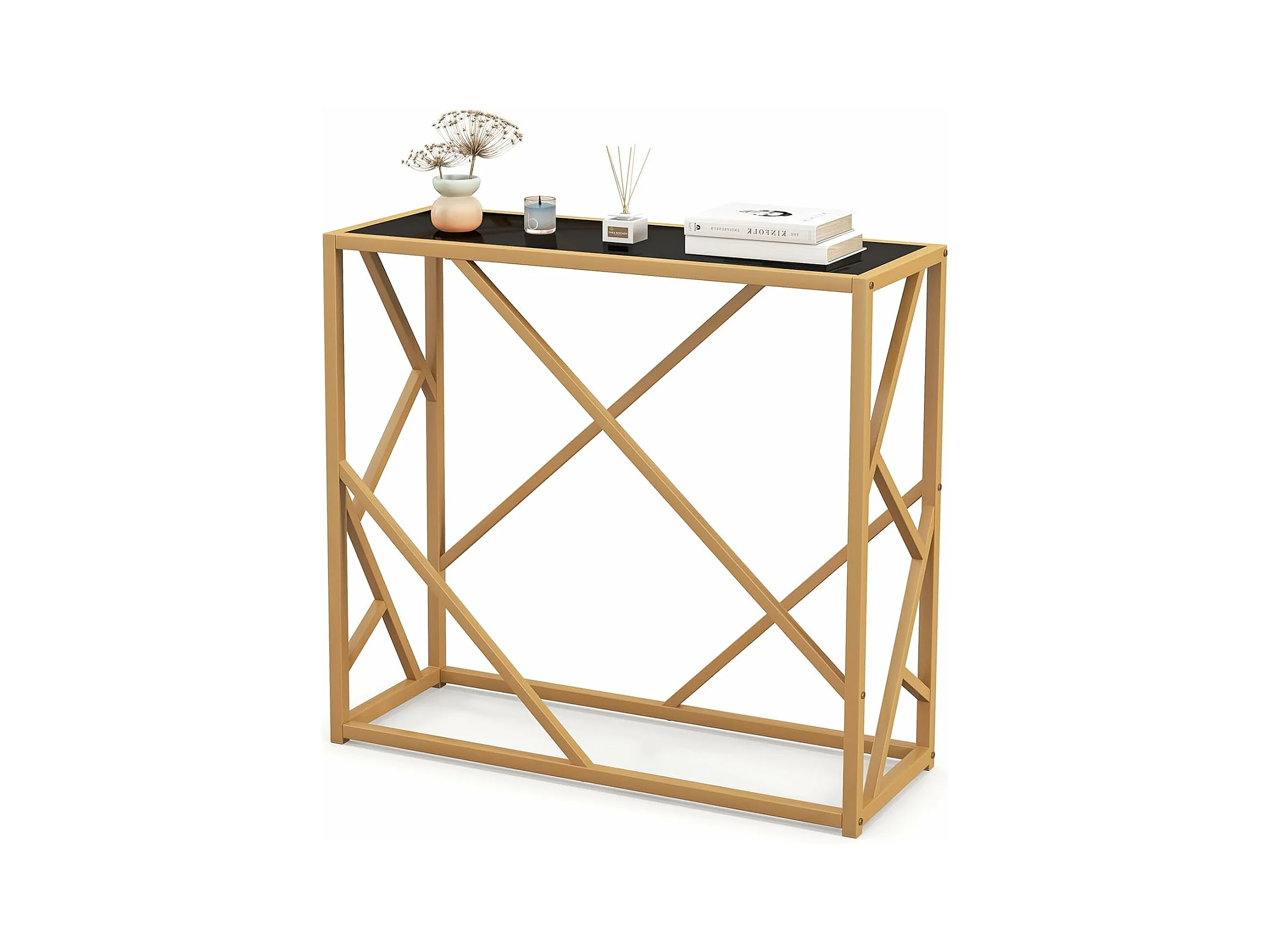 Console pour entrée avec plateau en verre trempé 80 cm, cadre en métal, 80 x 30 x 75 cm