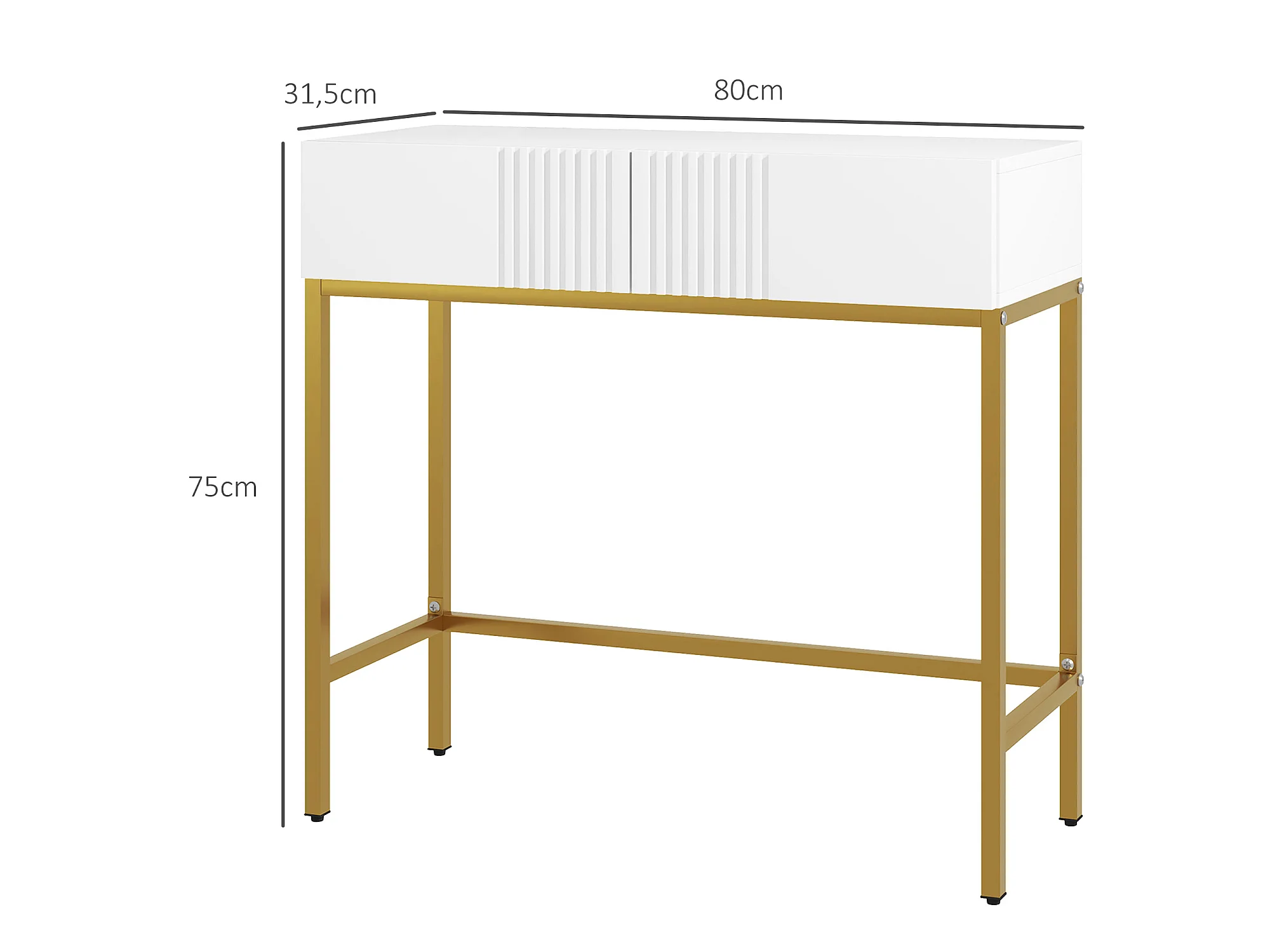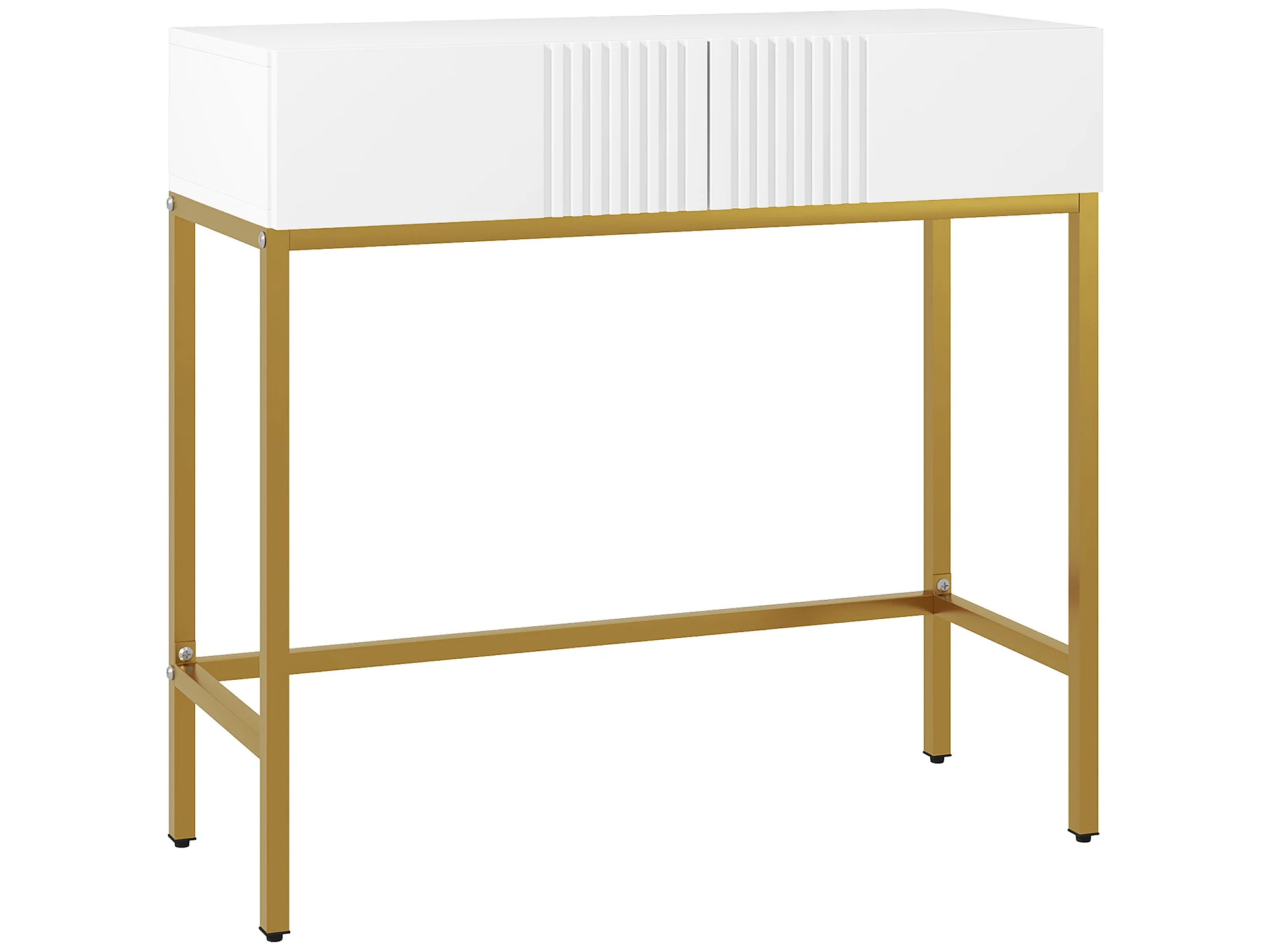 Console style Art déco - 2 tiroirs - piètement acier doré - blanc