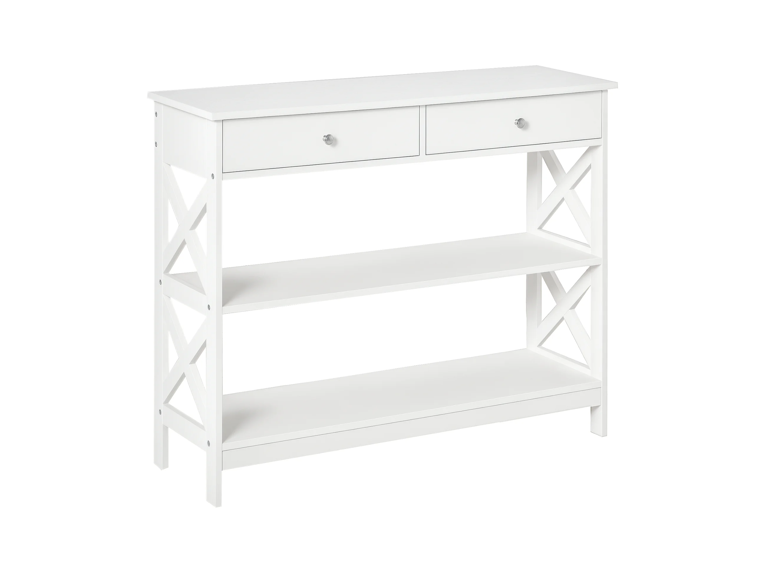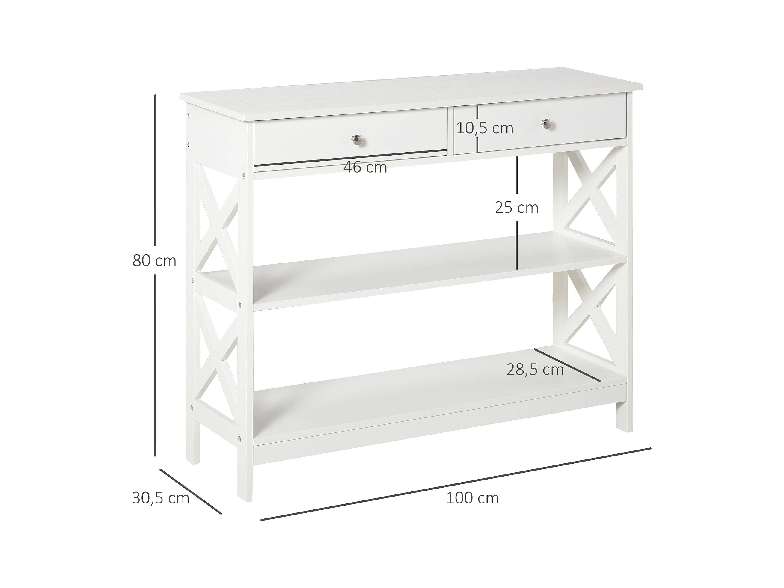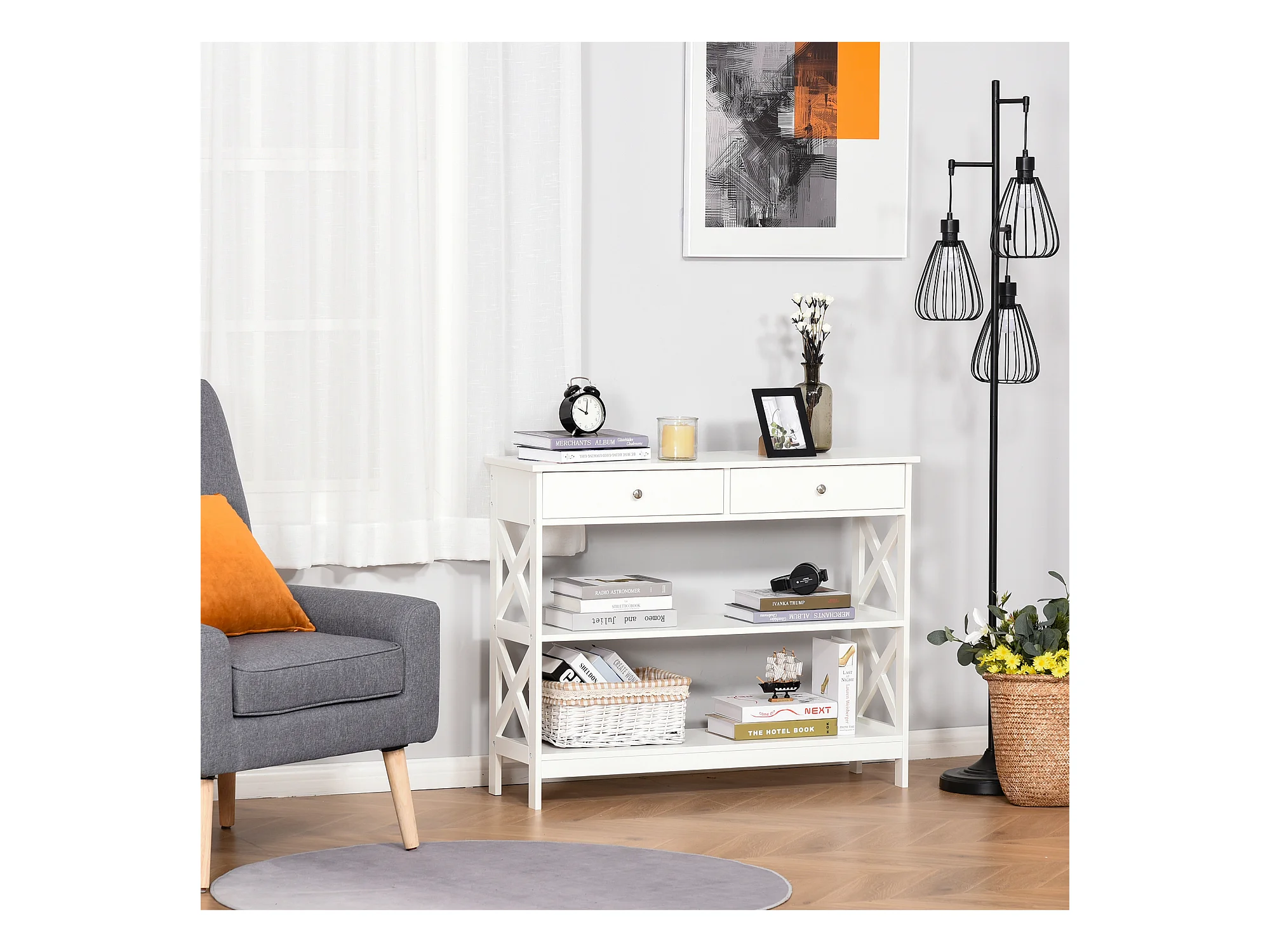 Console style table de drapier néo-rétro 2 tiroirs 2 étagères dim. 100L x 30l x 80H cm MDF blanc