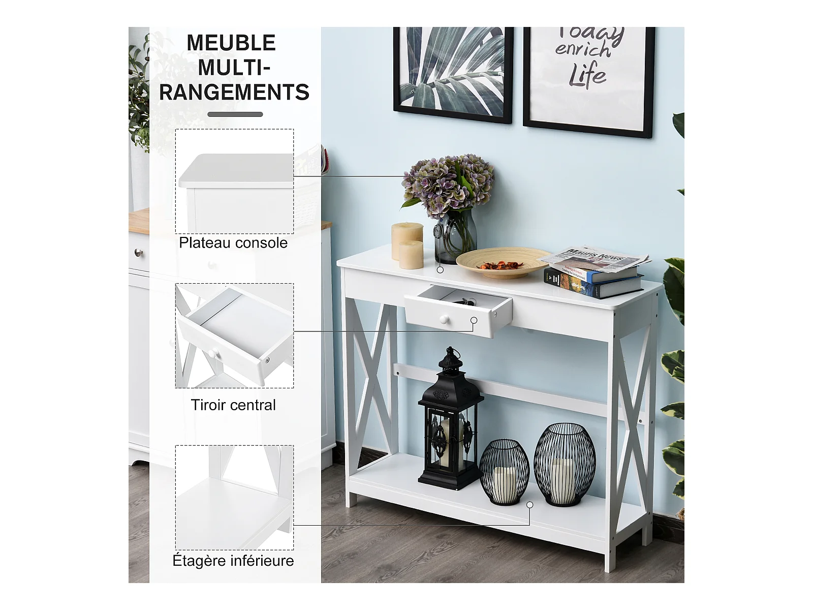 Console style table de drapier néo-rétro tiroir + étagère dim. 100L x 30l x 81H cm MDF blanc