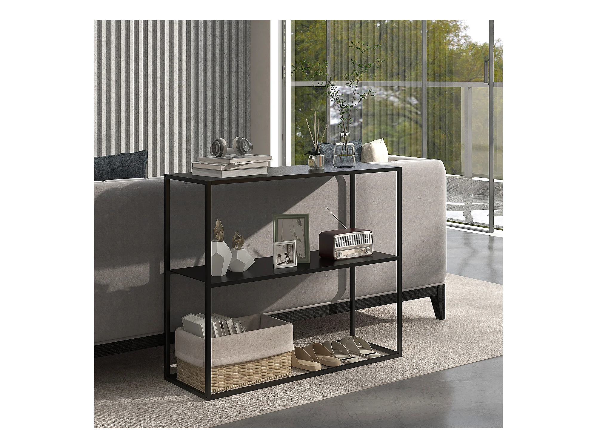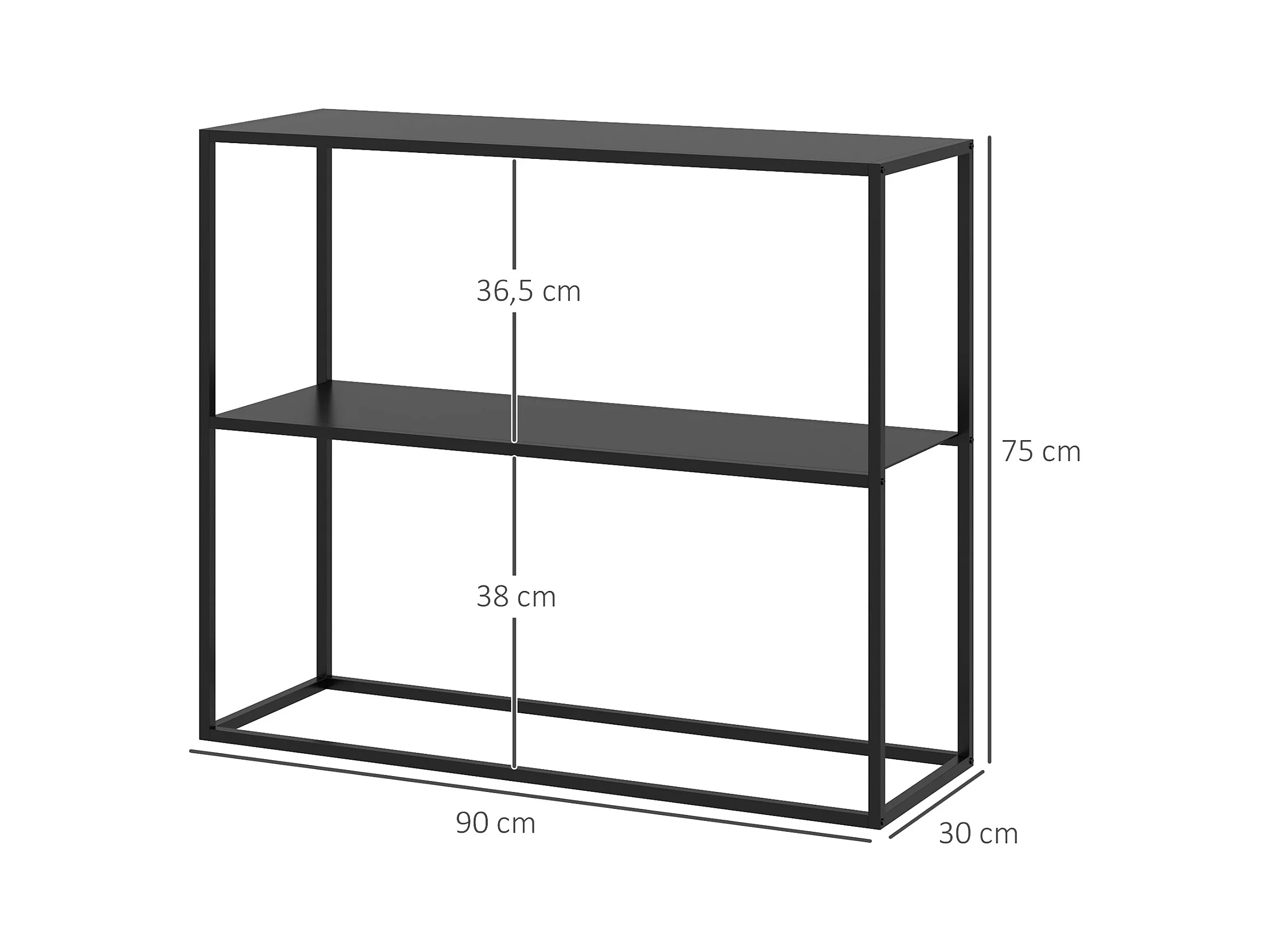 Console table d'appoint style contemporain avec étagère - dim. 90L x 30l x 75H cm - acier noir