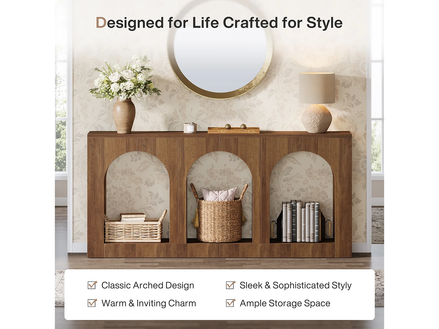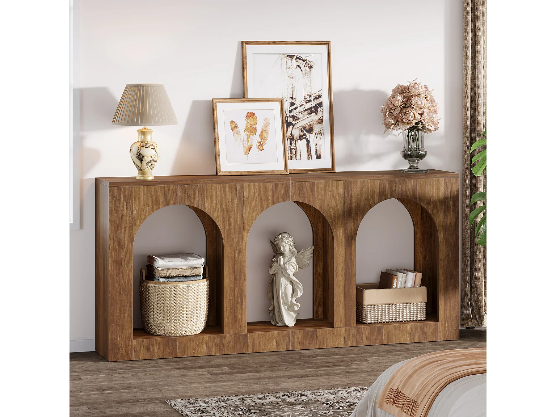 Console, table d'entrée avec 3 étagères cintrées, tables d'entrée avec rangement pour hall d'entrée