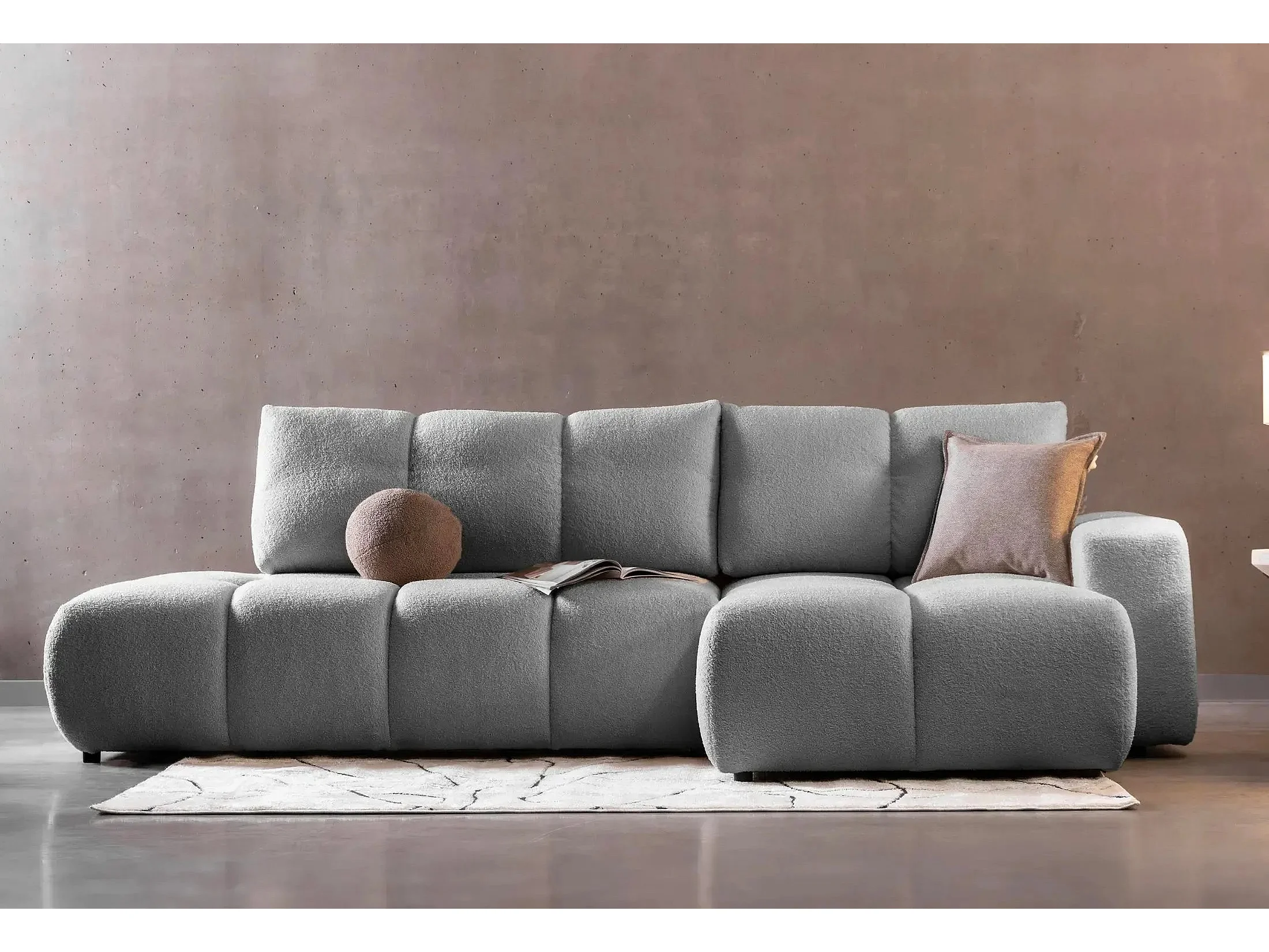CONSTANCE - Canapé d'angle convertible tissu bouclette 4 places - Gris clair - Gauche