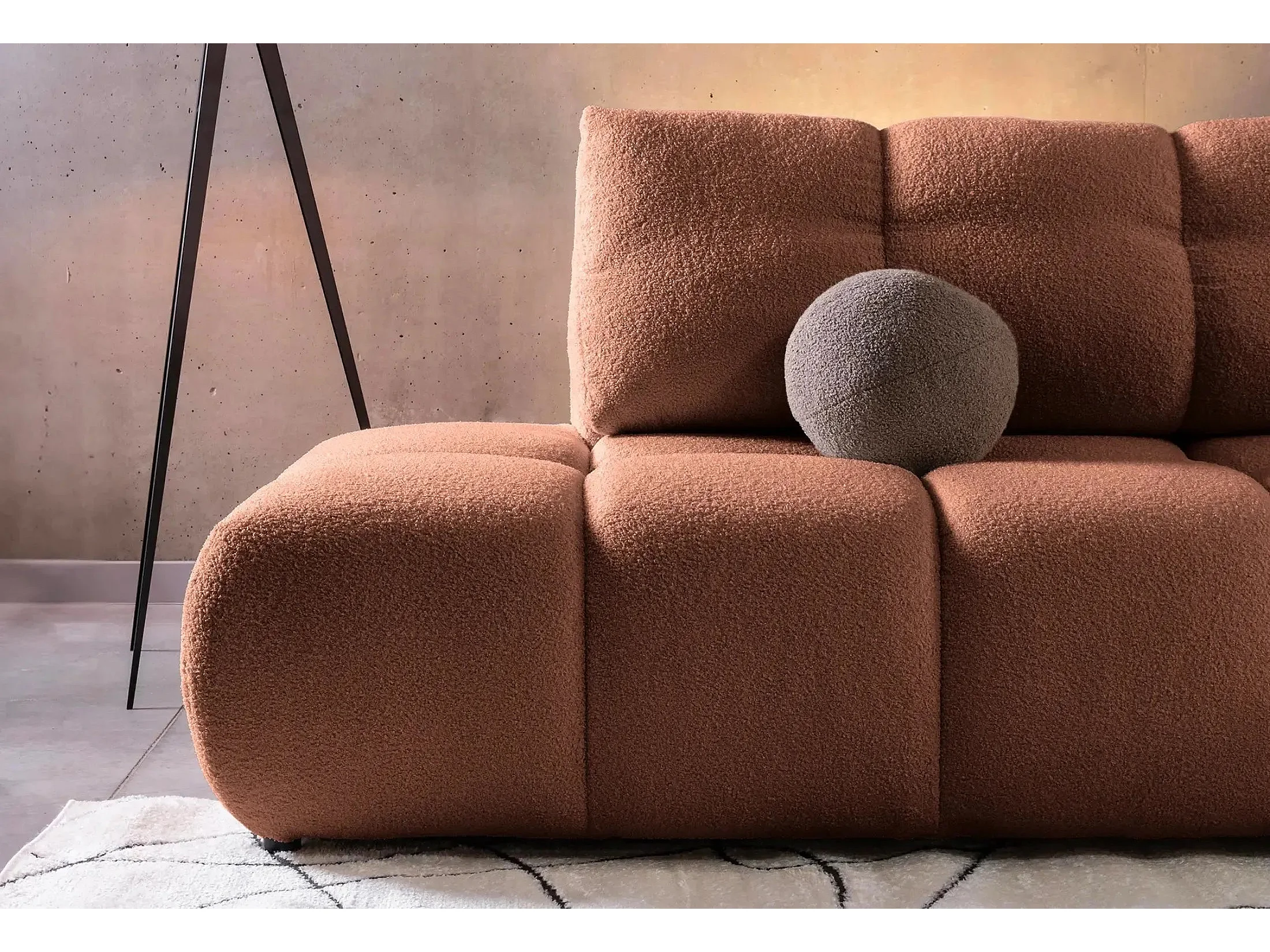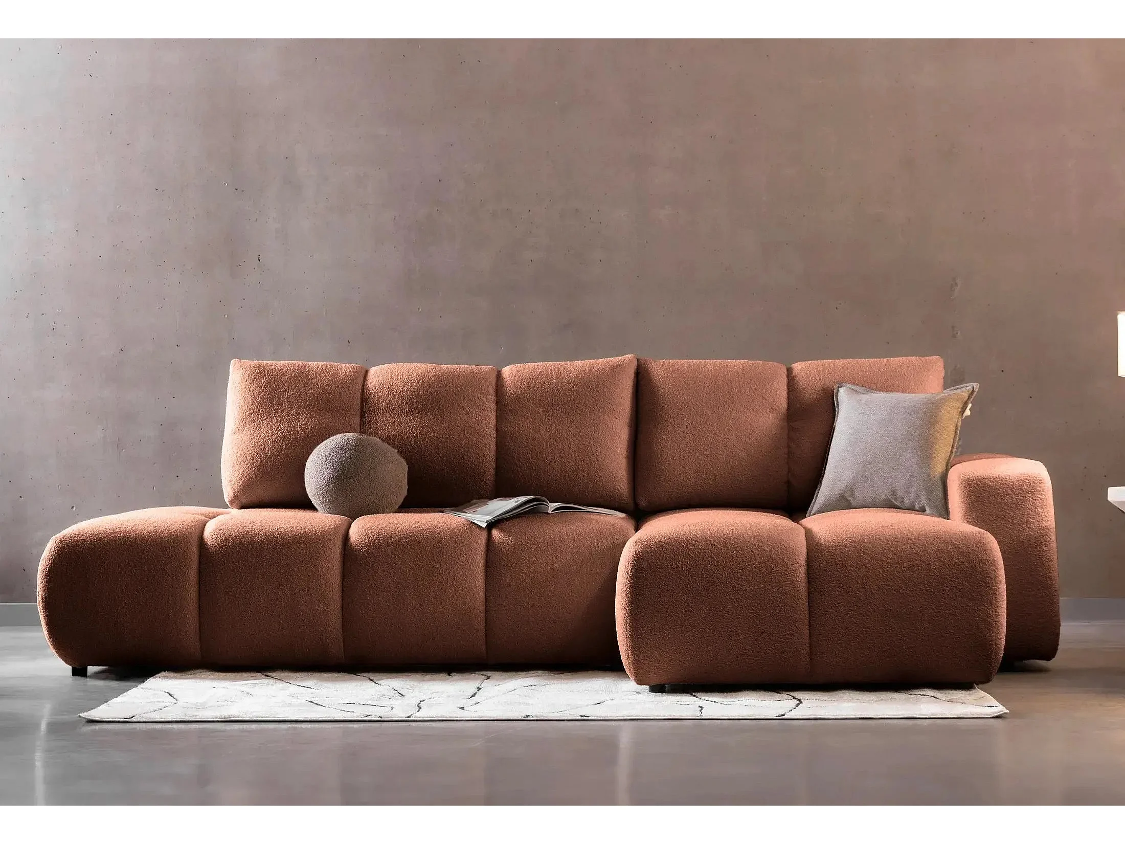 CONSTANCE - Canapé d'angle convertible tissu bouclette 4 places - Terracotta - Droit