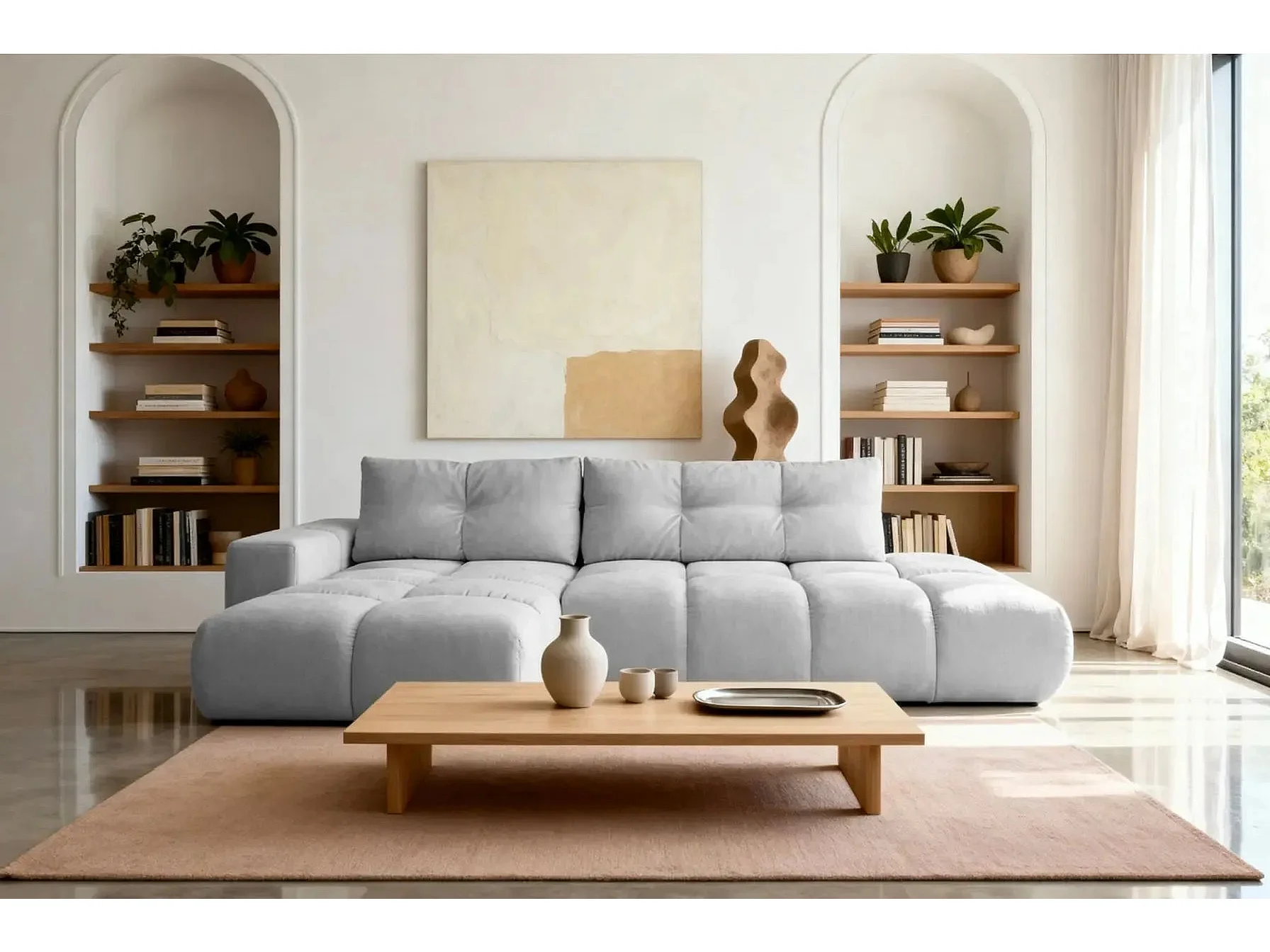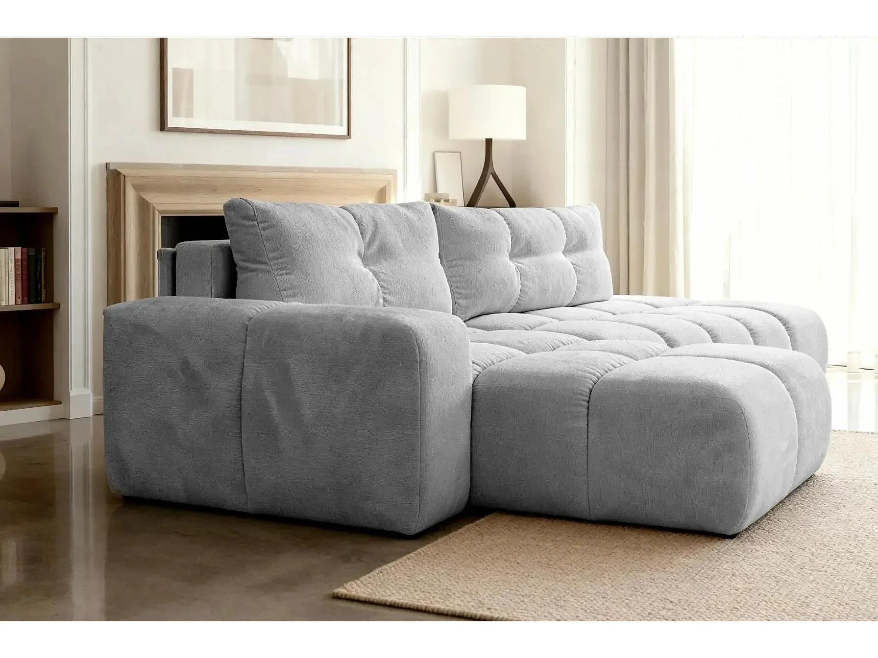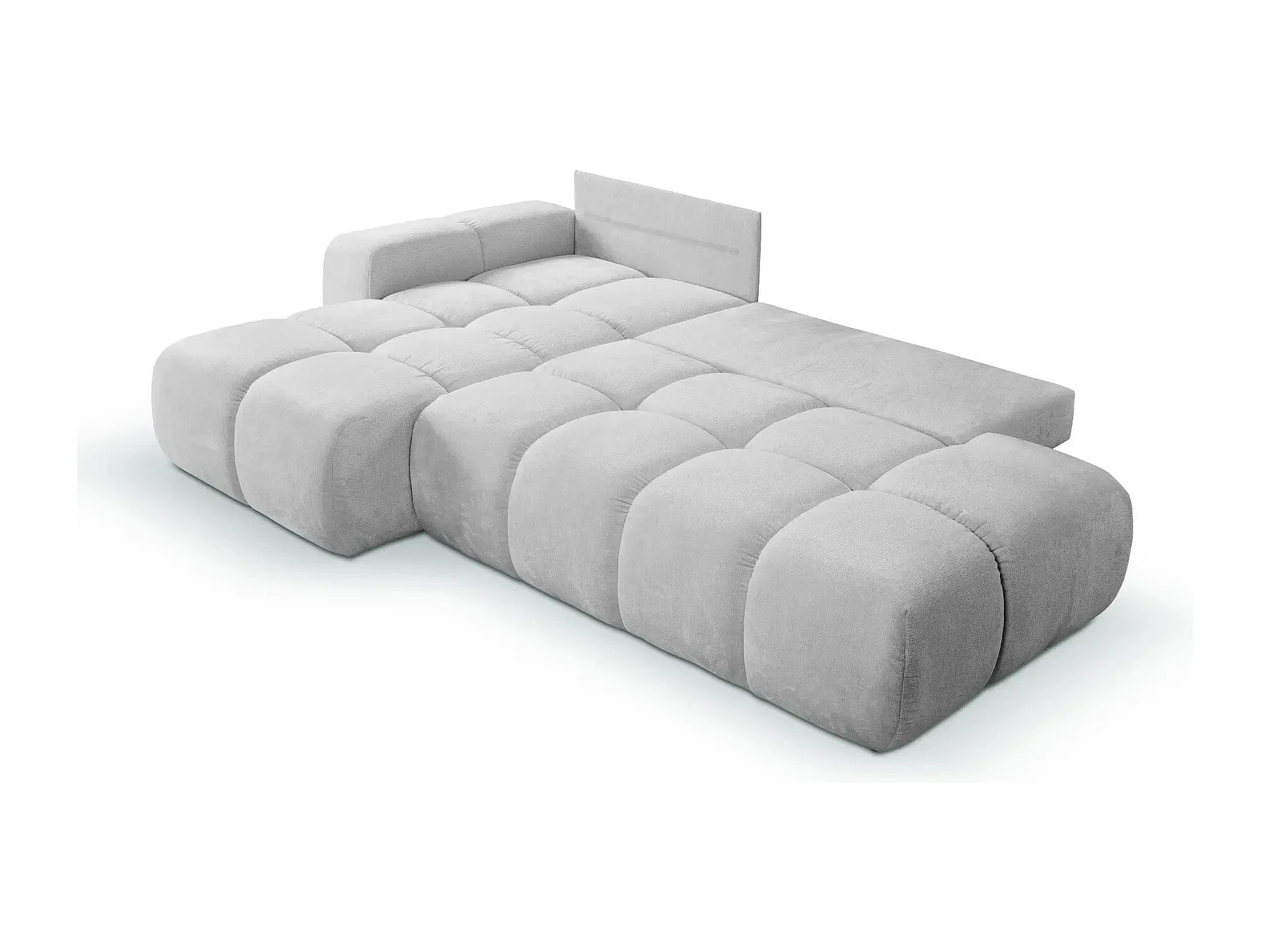 CONSTANCE - Canapé d'angle convertible tissu chenille 4 places - Gris clair - Gauche