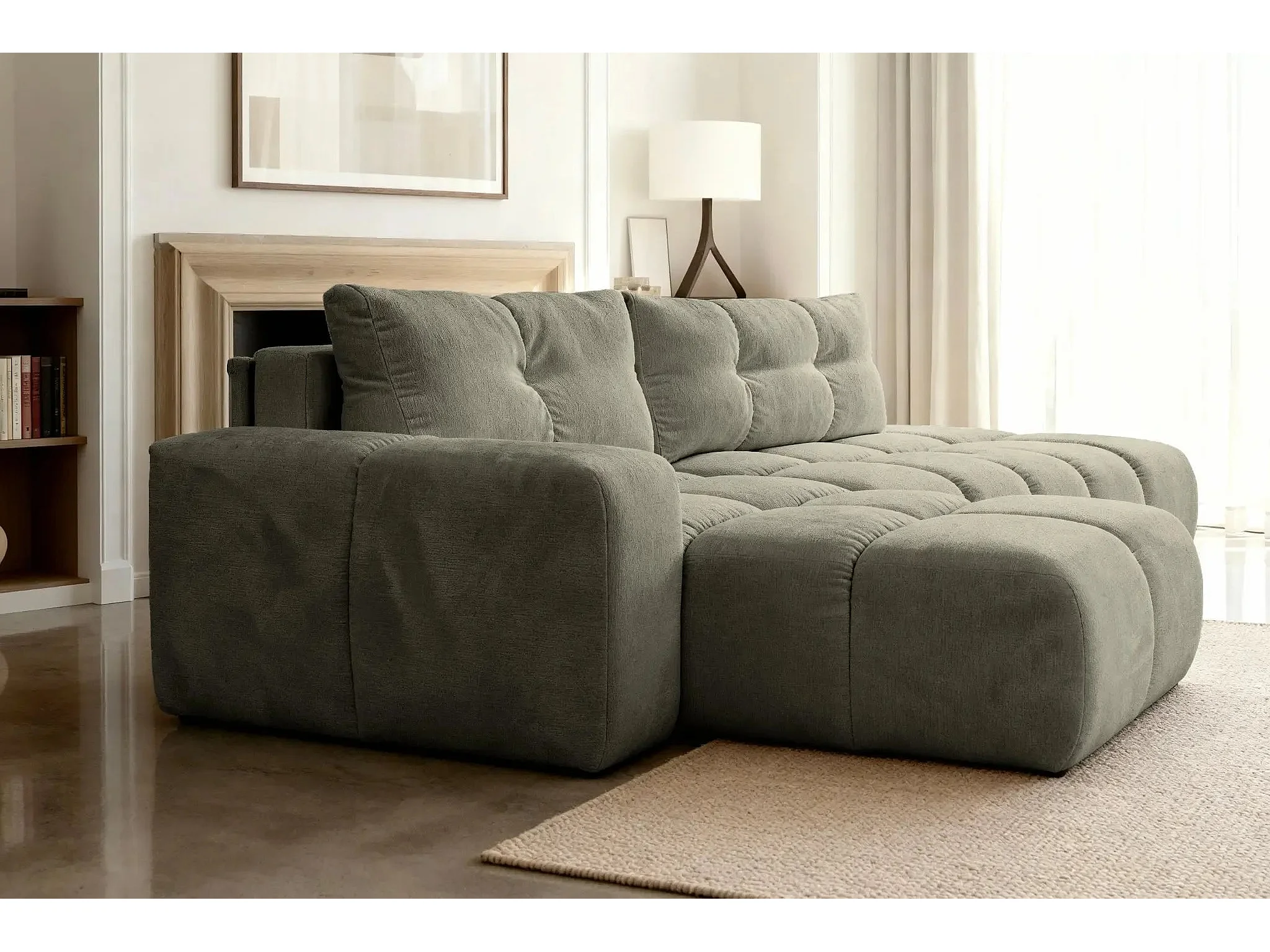 CONSTANCE - Canapé d'angle convertible tissu chenille 4 places - Vert - Gauche