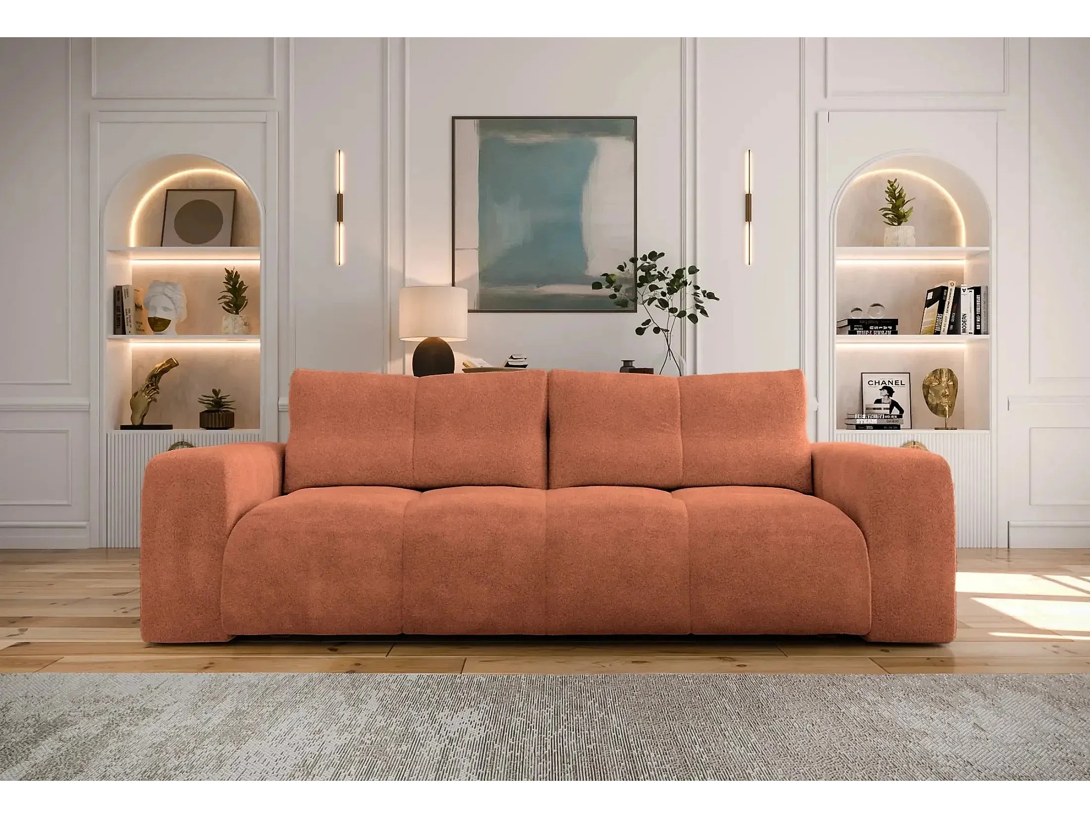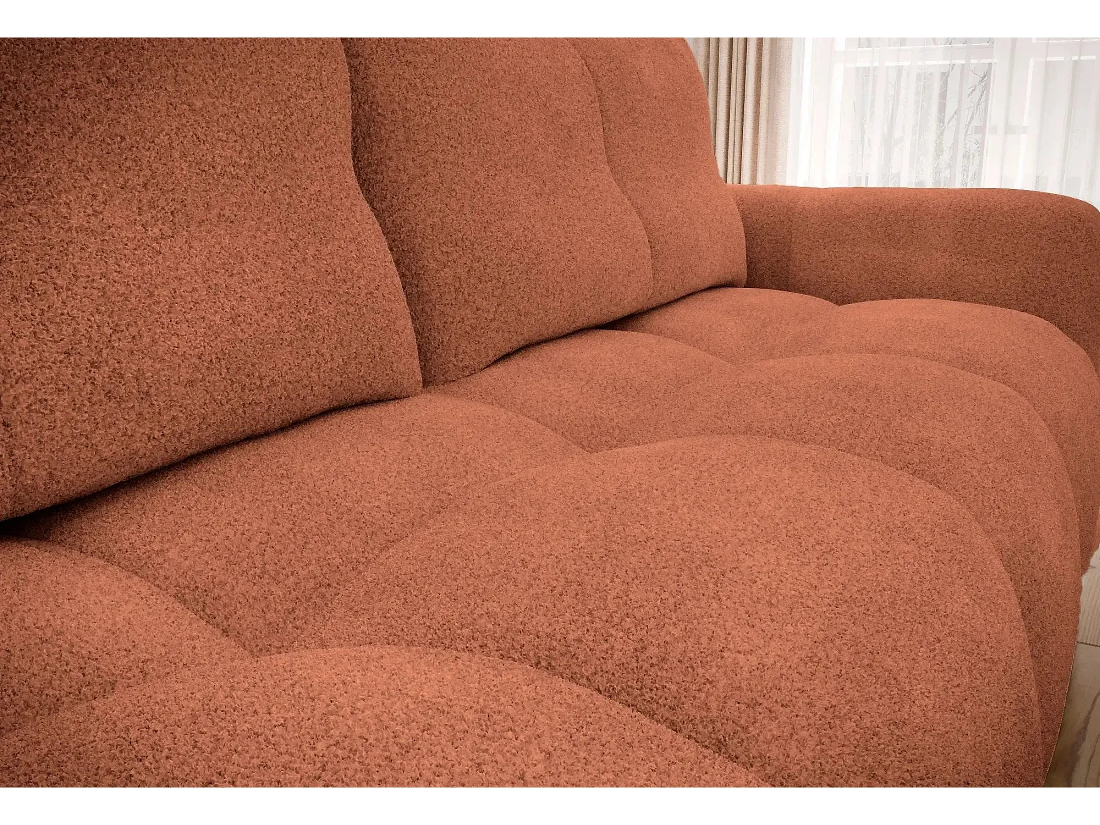 CONSTANCE - Canapé droit convertible tissu bouclette 3 places - Terracotta