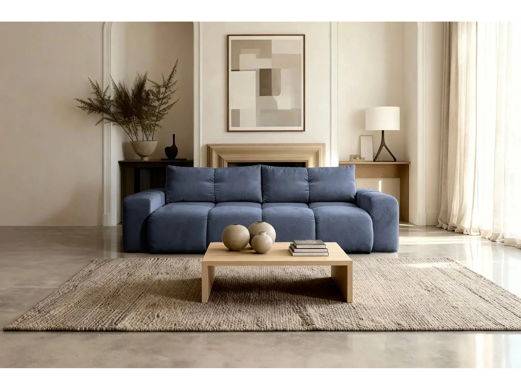 CONSTANCE - Canapé droit convertible tissu chenille 3 places - Bleu