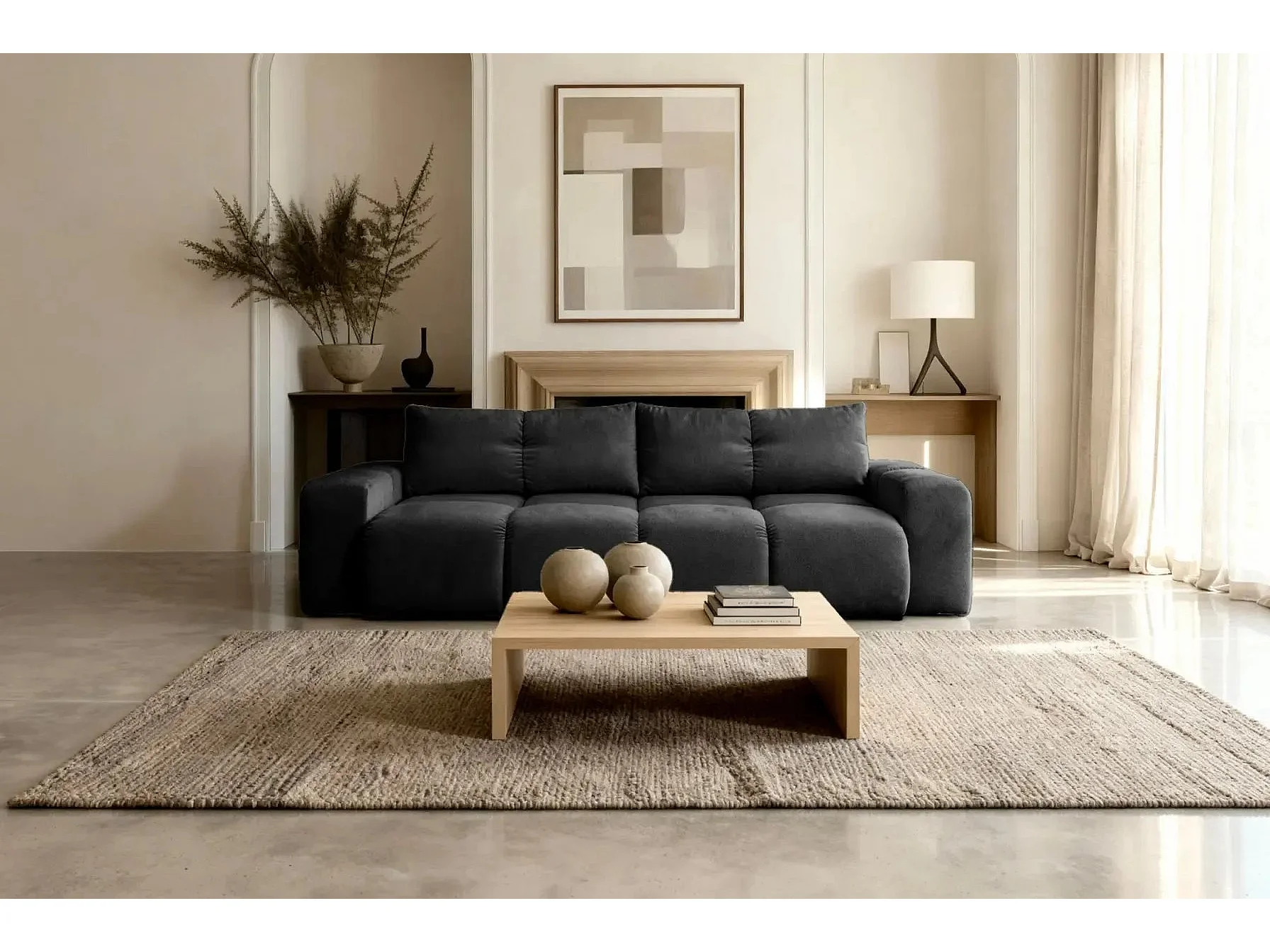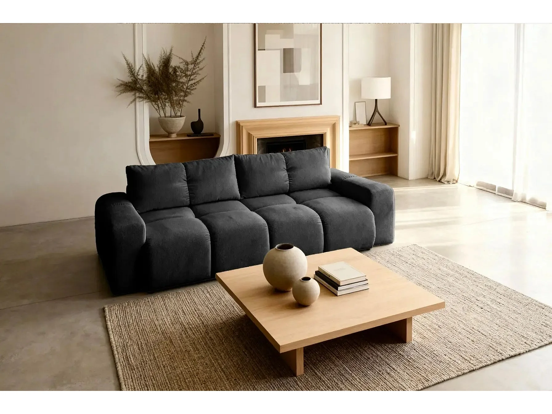 CONSTANCE - Canapé droit convertible tissu chenille 4 places - Noir