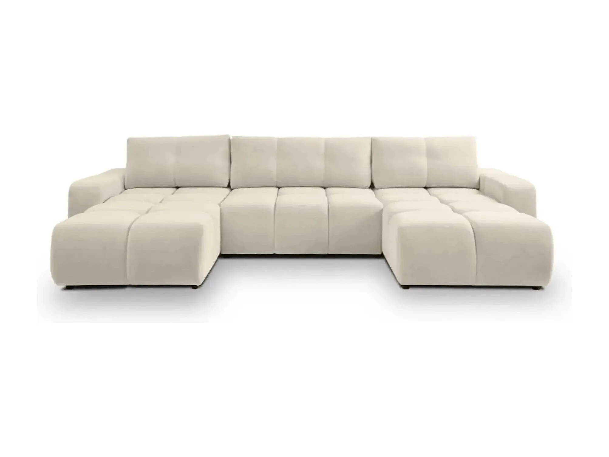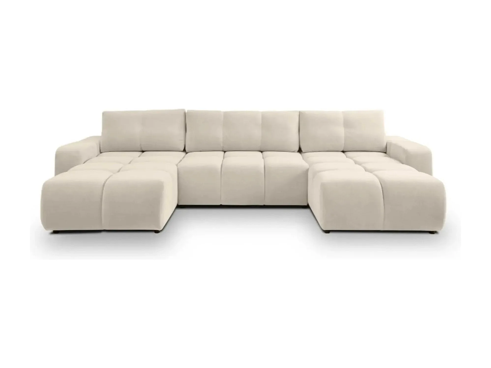 CONSTANCE - Canapé panoramique convertible tissu chenille 5 places - Beige
