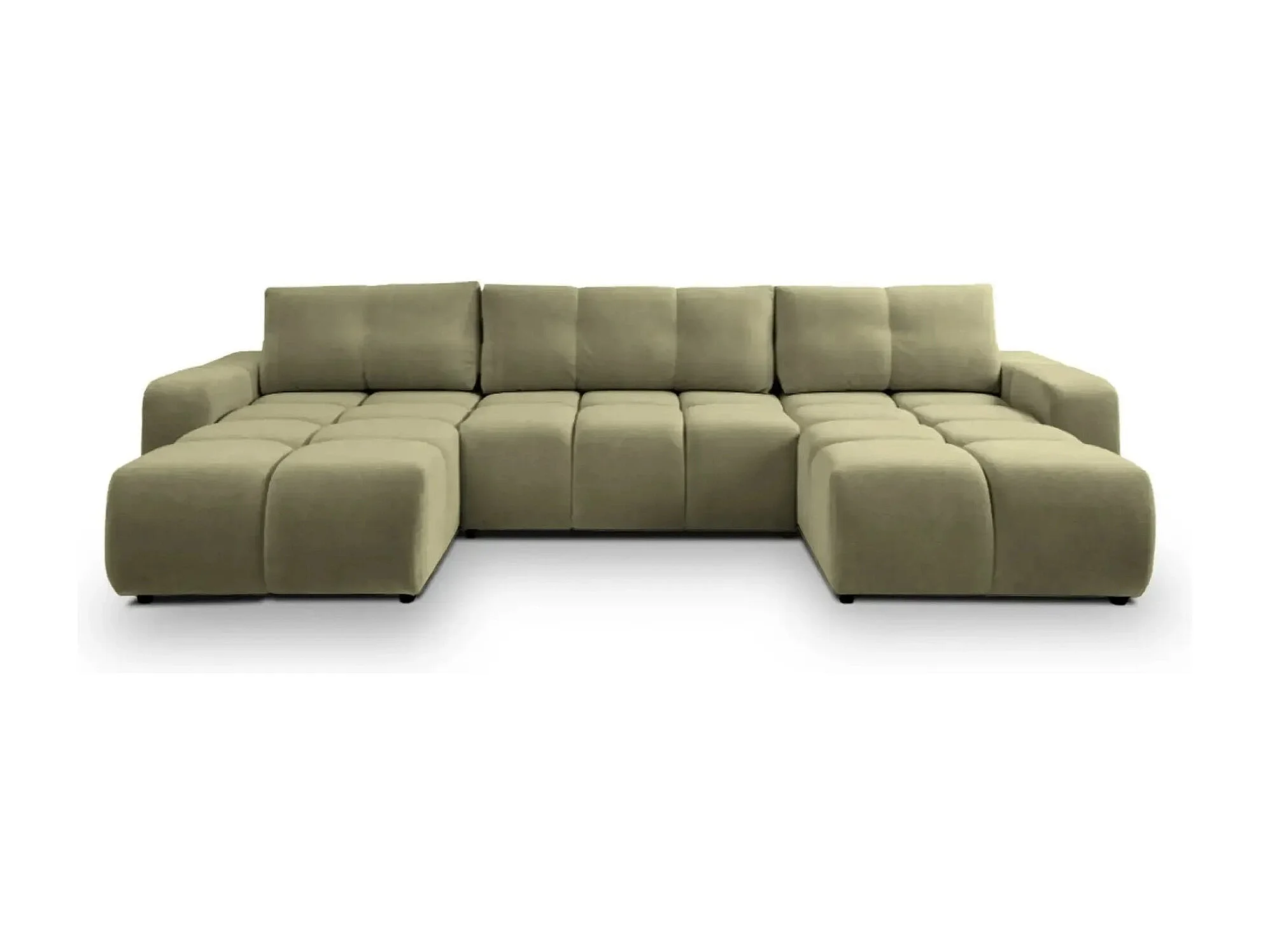 CONSTANCE - Canapé panoramique convertible tissu chenille - Vert