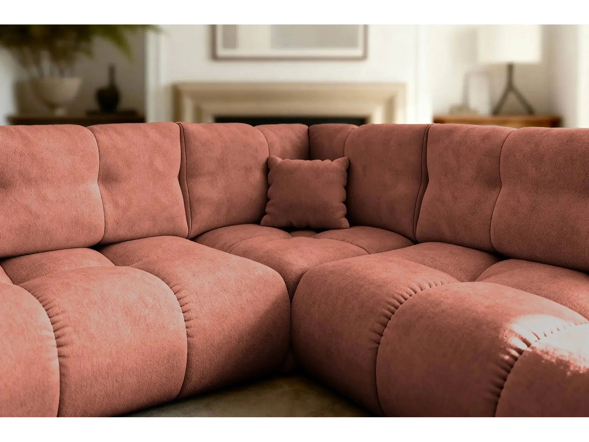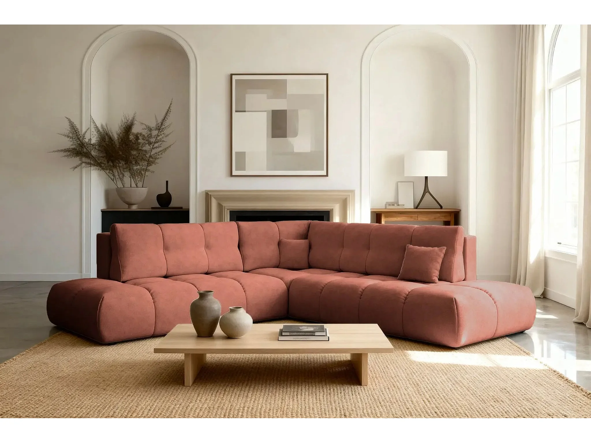 CONSTANCE L - Canapé d'angle convertible tissu chenille 4 places - Café - Gauche