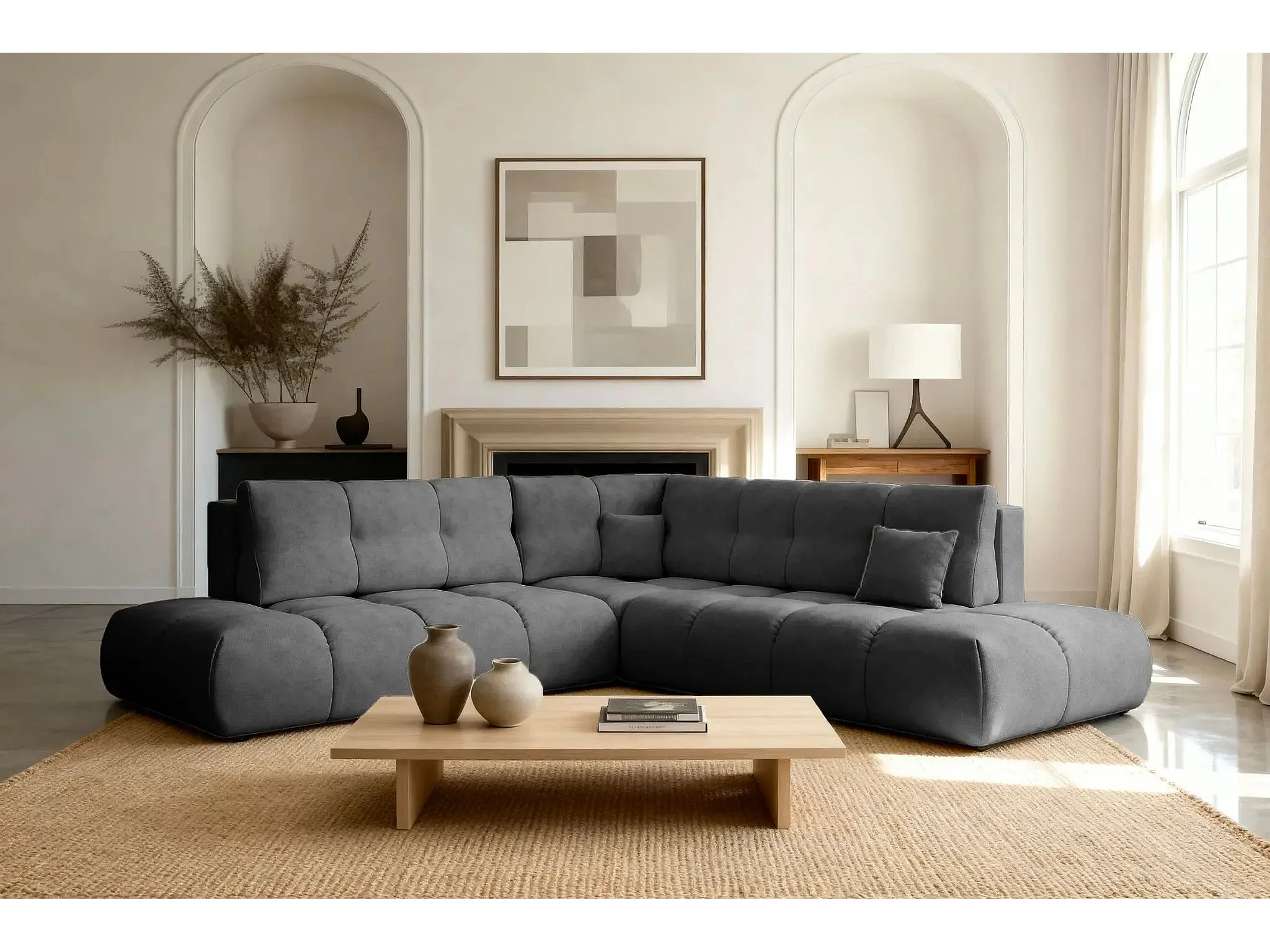 CONSTANCE L - Canapé d'angle convertible tissu chenille 4 places - Gris anthracite - Droit