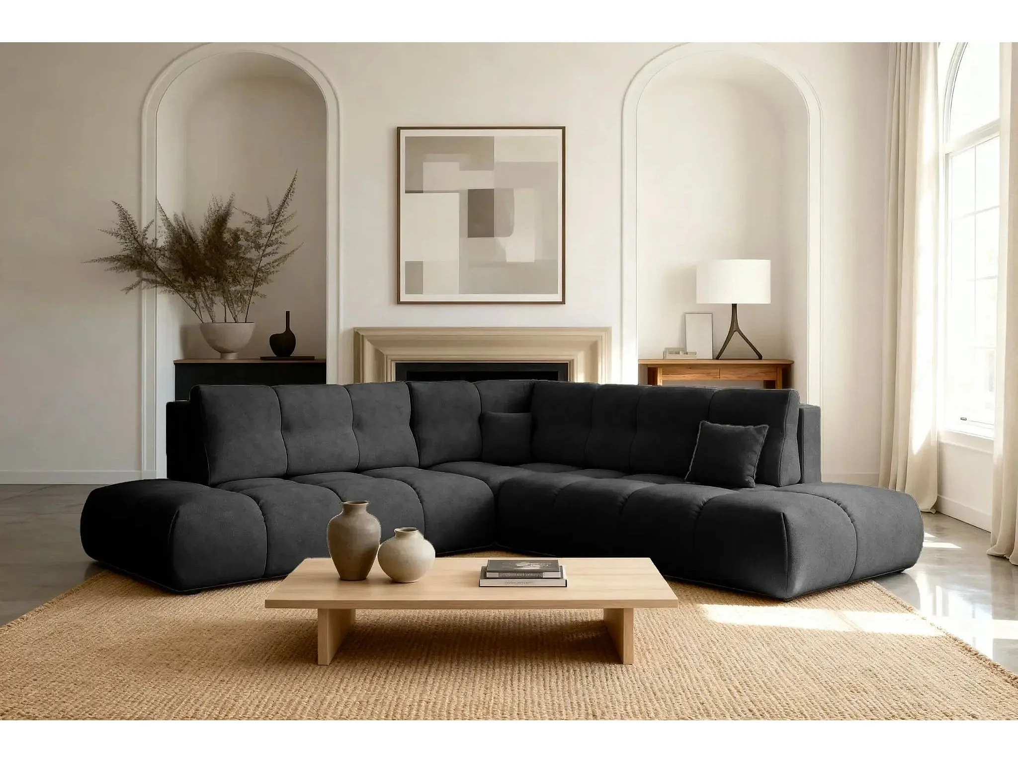 CONSTANCE L - Canapé d'angle convertible tissu chenille 4 places - Terracotta - Gauche