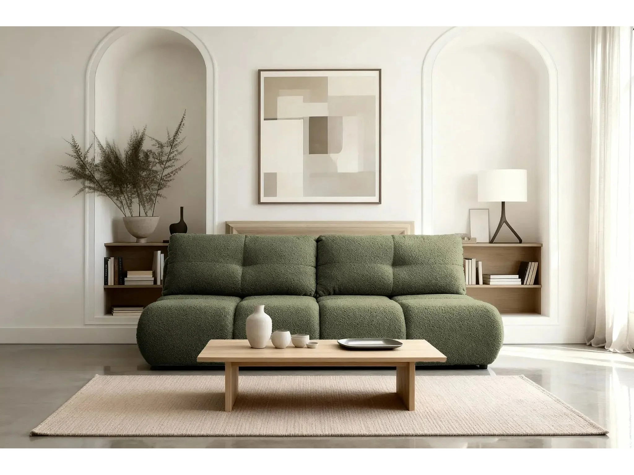 CONSTANCE MINI - Canapé droit convertible tissu bouclette 2 places - Vert