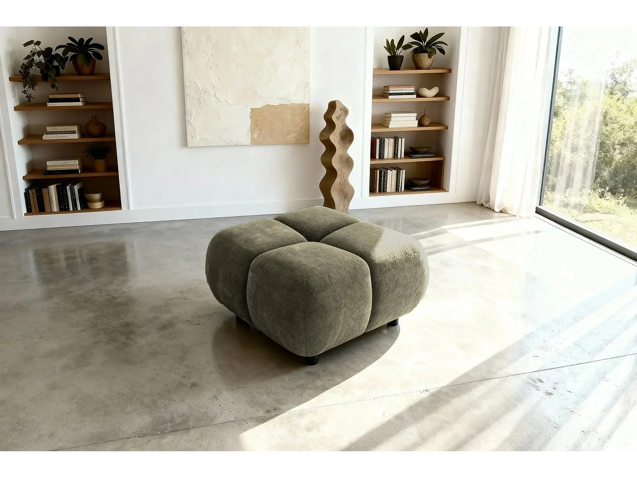 CONSTANCE - Pouf en tissu chenille Vert 72x72x43.5