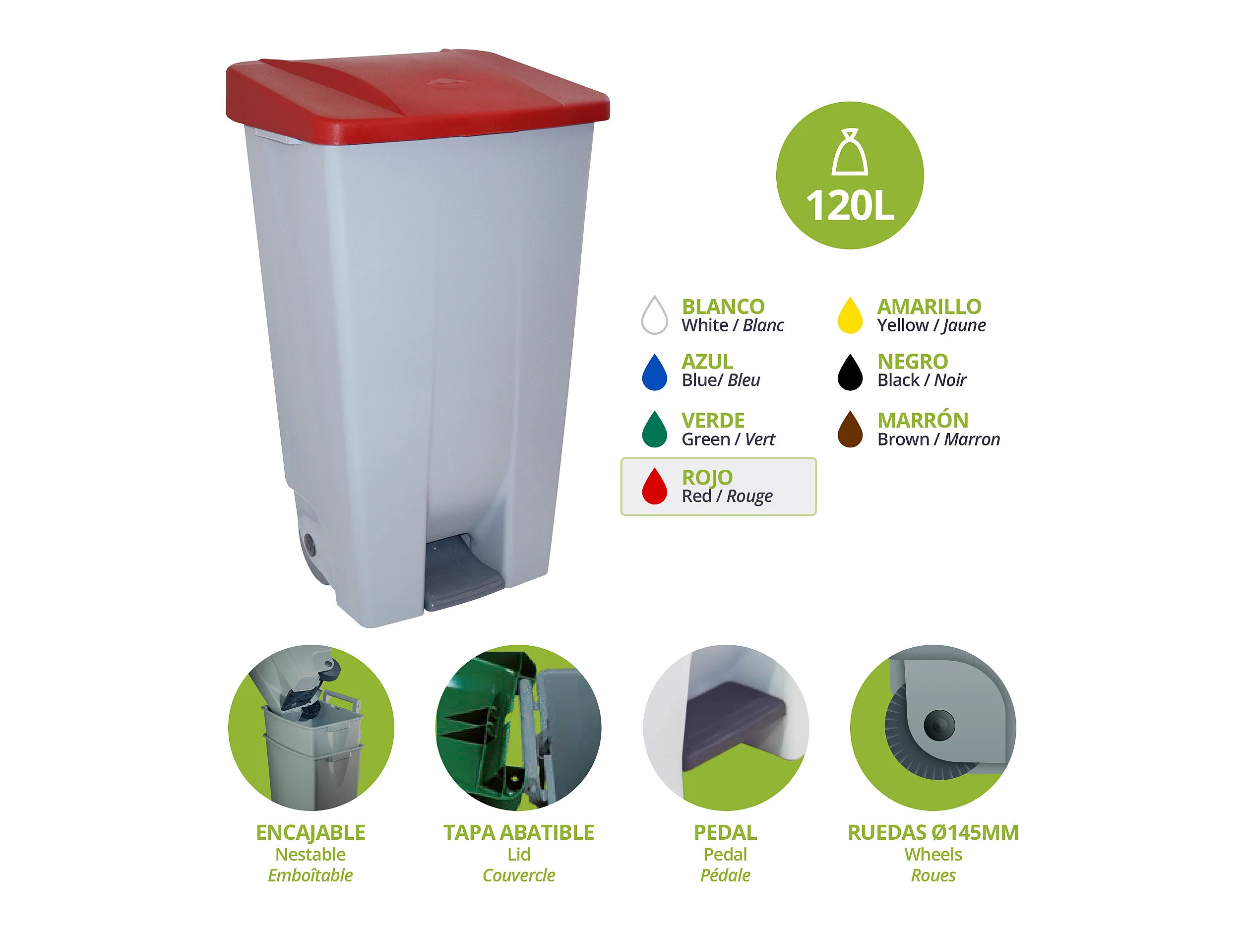 Conteneur sélectif 120 litres, L51 P 42 H87
