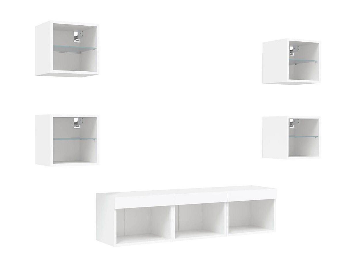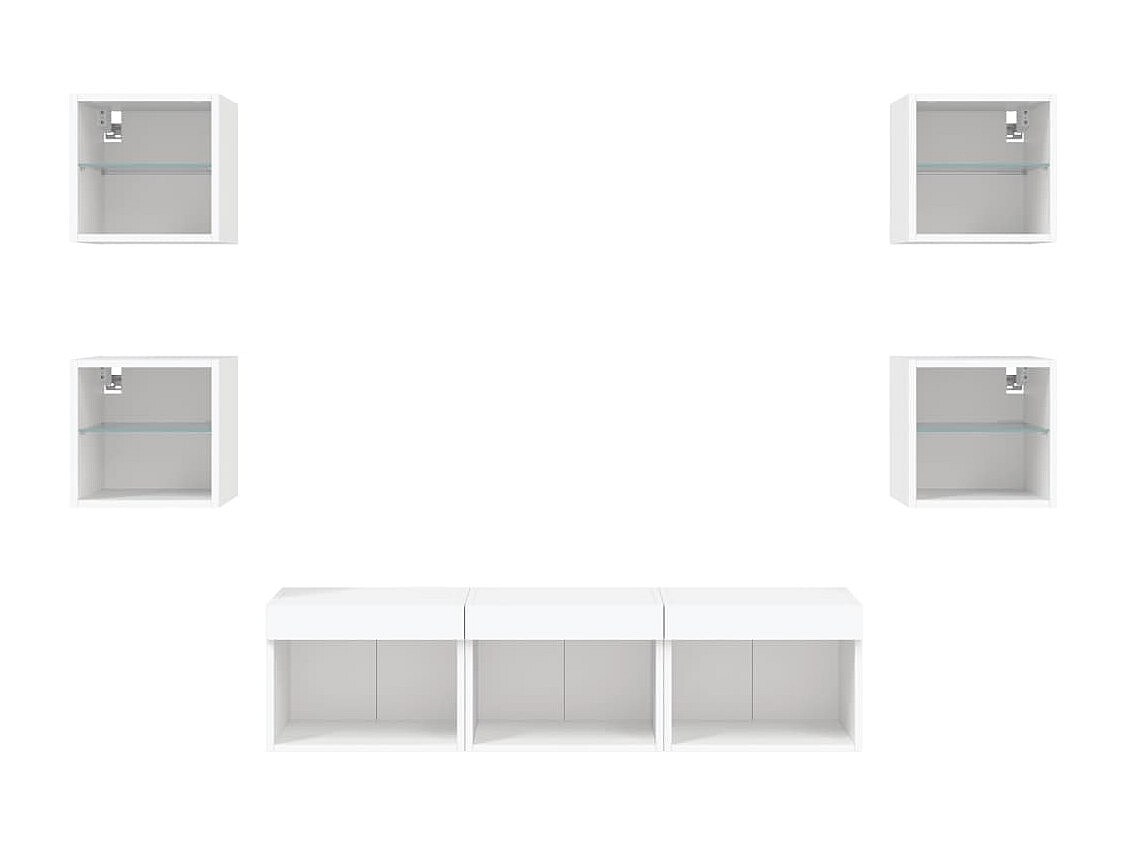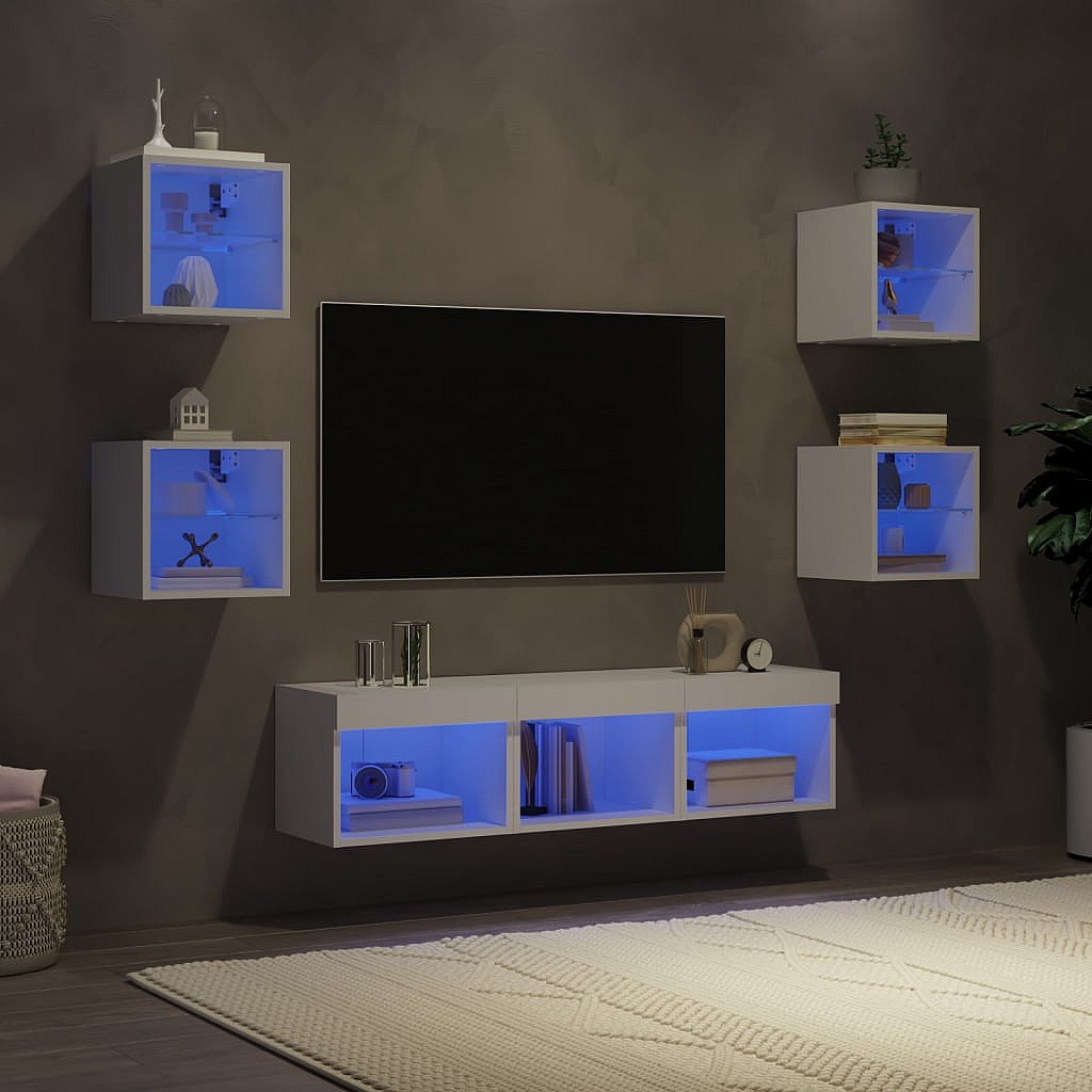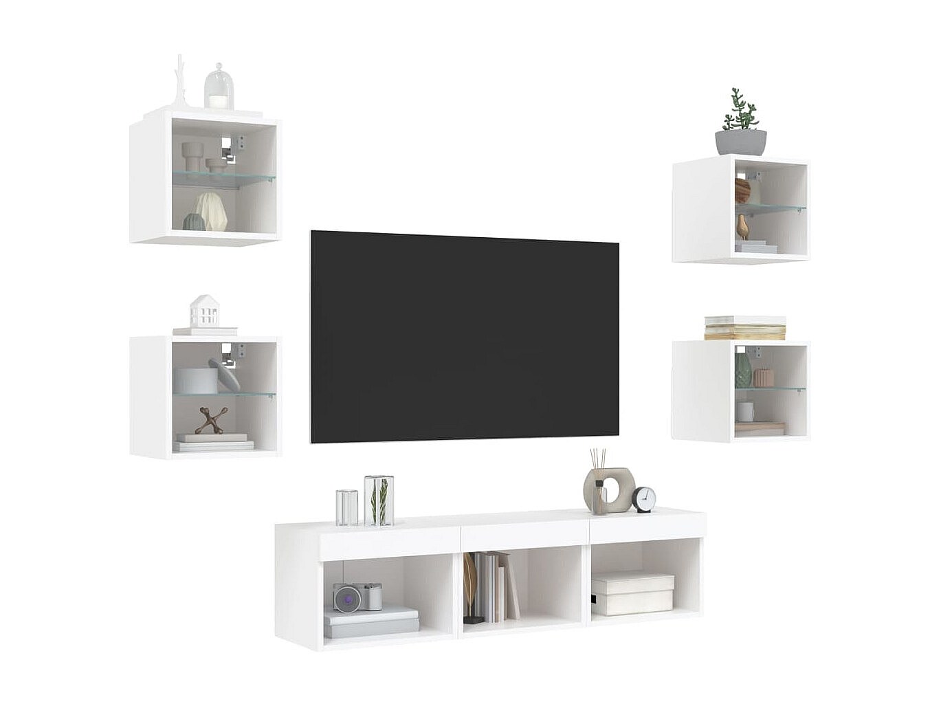 Coolgreany Unités murales TV avec LED 7 pcs blanc bois d'ingénierie