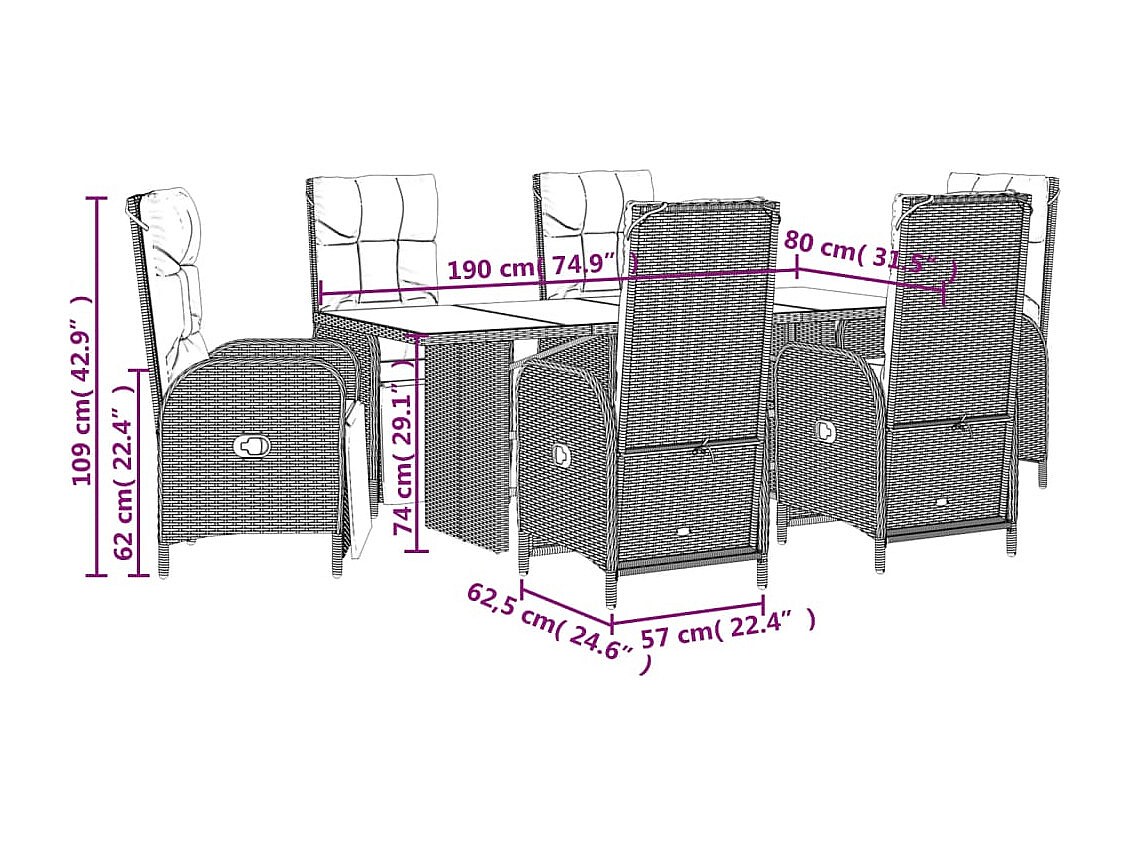 Coon Rapids Ensemble à manger de jardin et coussins 7 pcs gris rotin