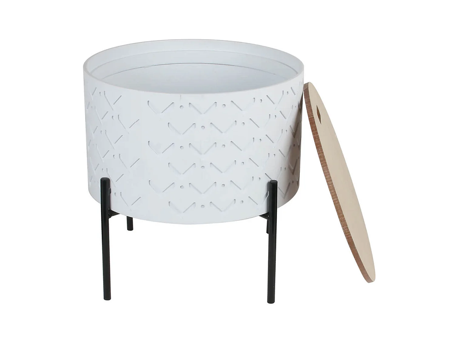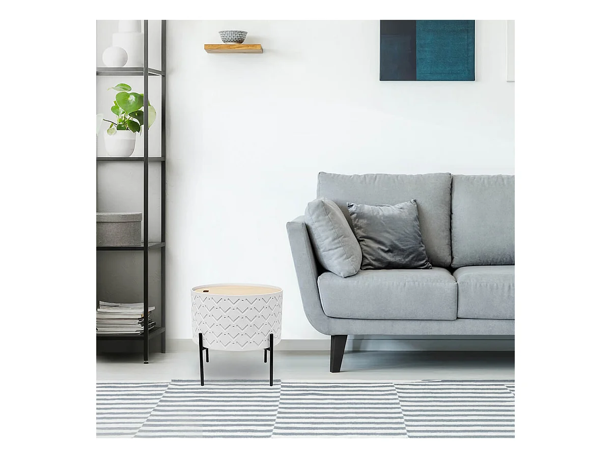 CORALLY - Table d'Appoint Ronde Blanche avec Coffre