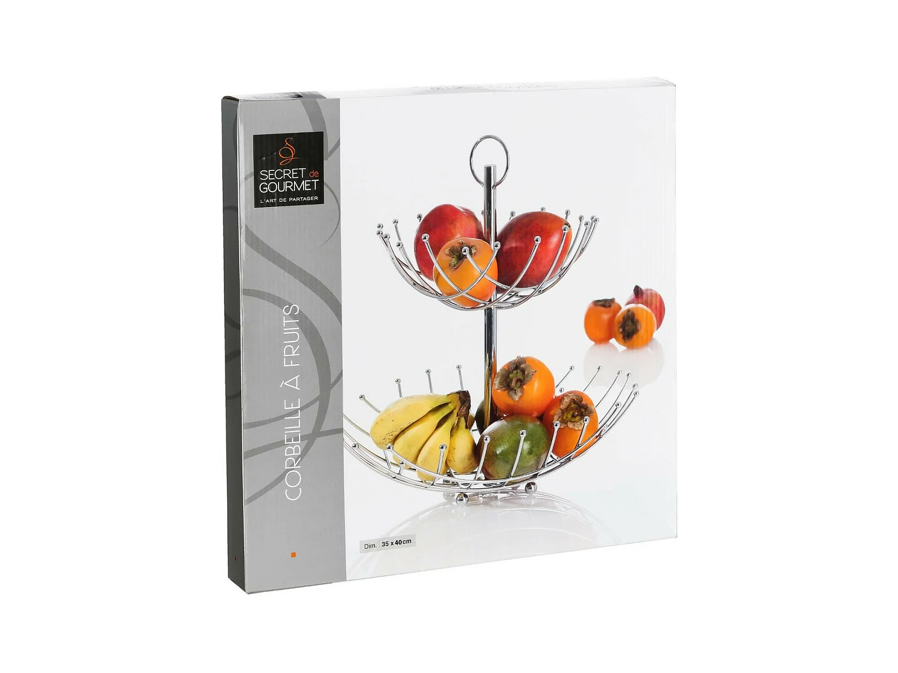 Corbeille à Fruits 2 Niveaux "Spirale" 40cm Argent