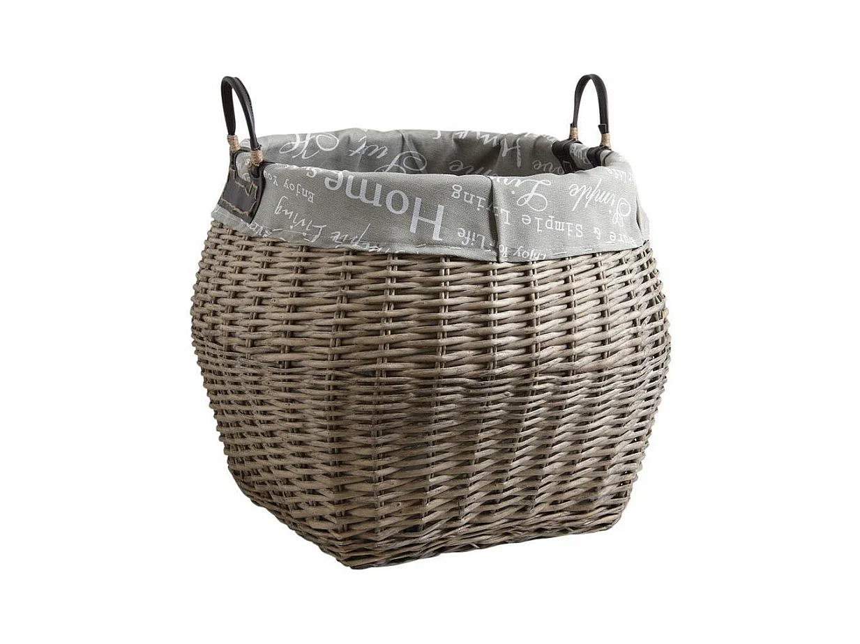 Corbeille de rangement en osier gris et coton 48 x 36 x 25 cm