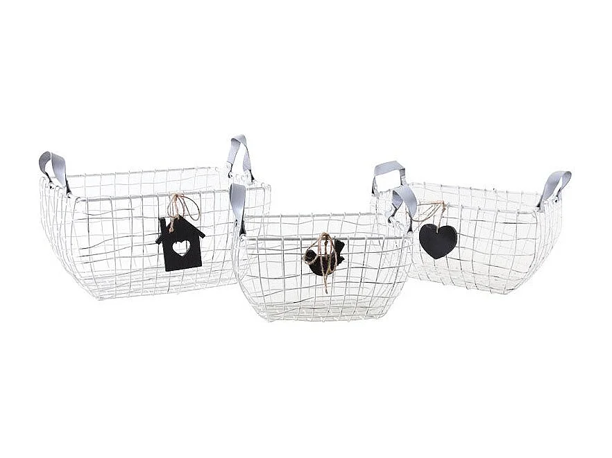 Corbeilles de rangement en métal blanc vieilli (série de 3)