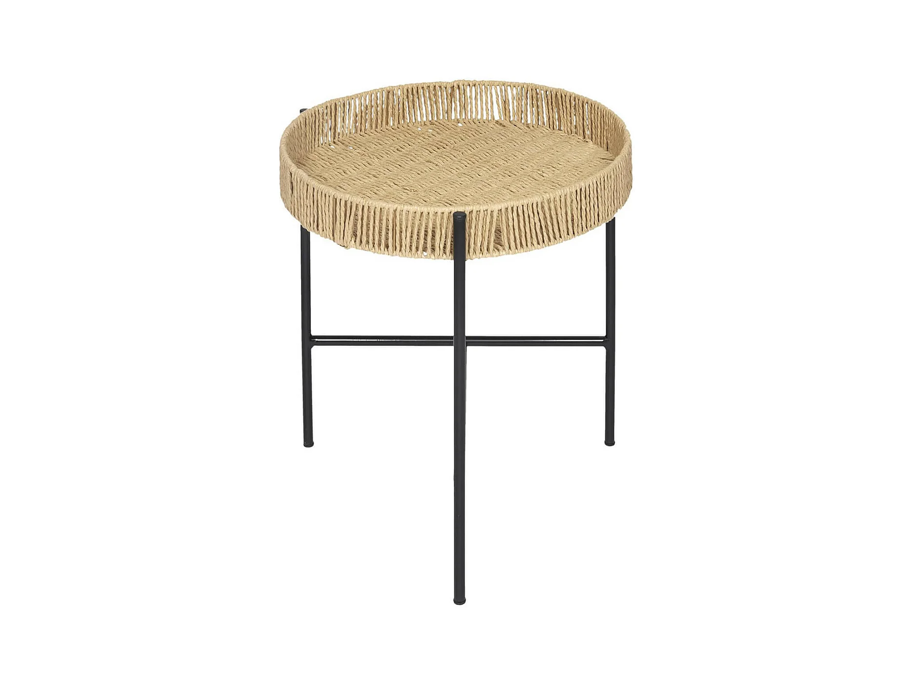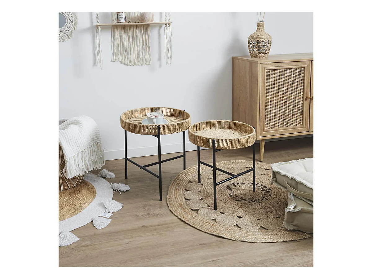 CORDY - Tables Gigogne en Métal Noir avec Plateaux Amovibles Façon Cordage