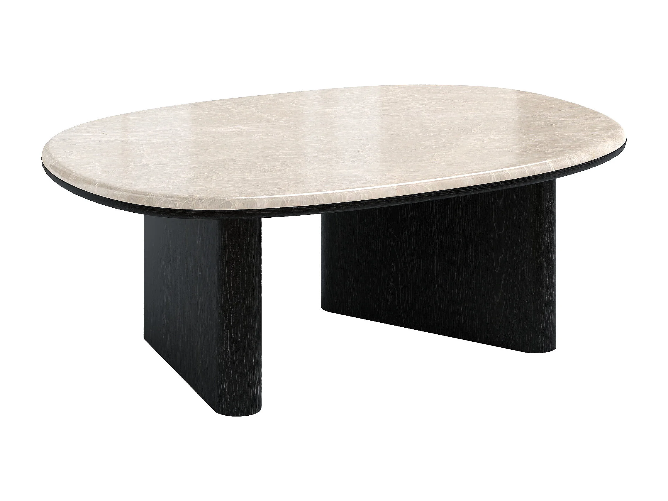 Table basse en marbre et placage chêne - Beige et noir - CORMINA