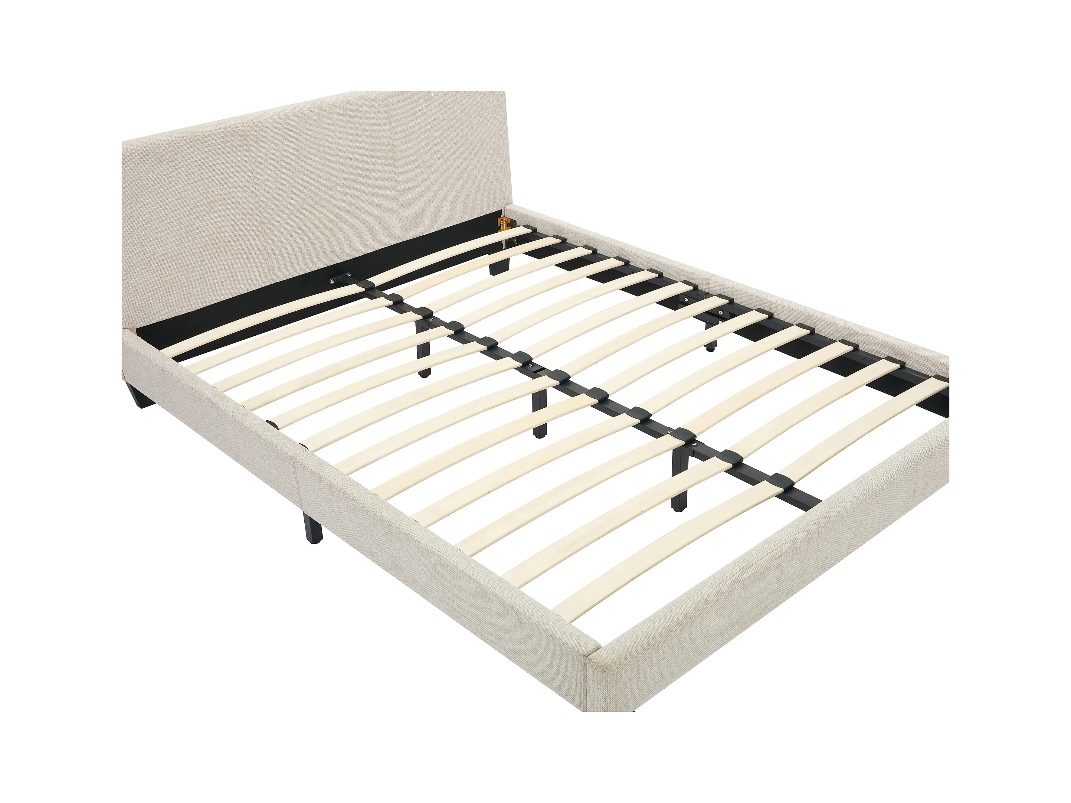 Lit 140 x 190 cm - Tissu - Beige + Matelas - CORNELIUS II