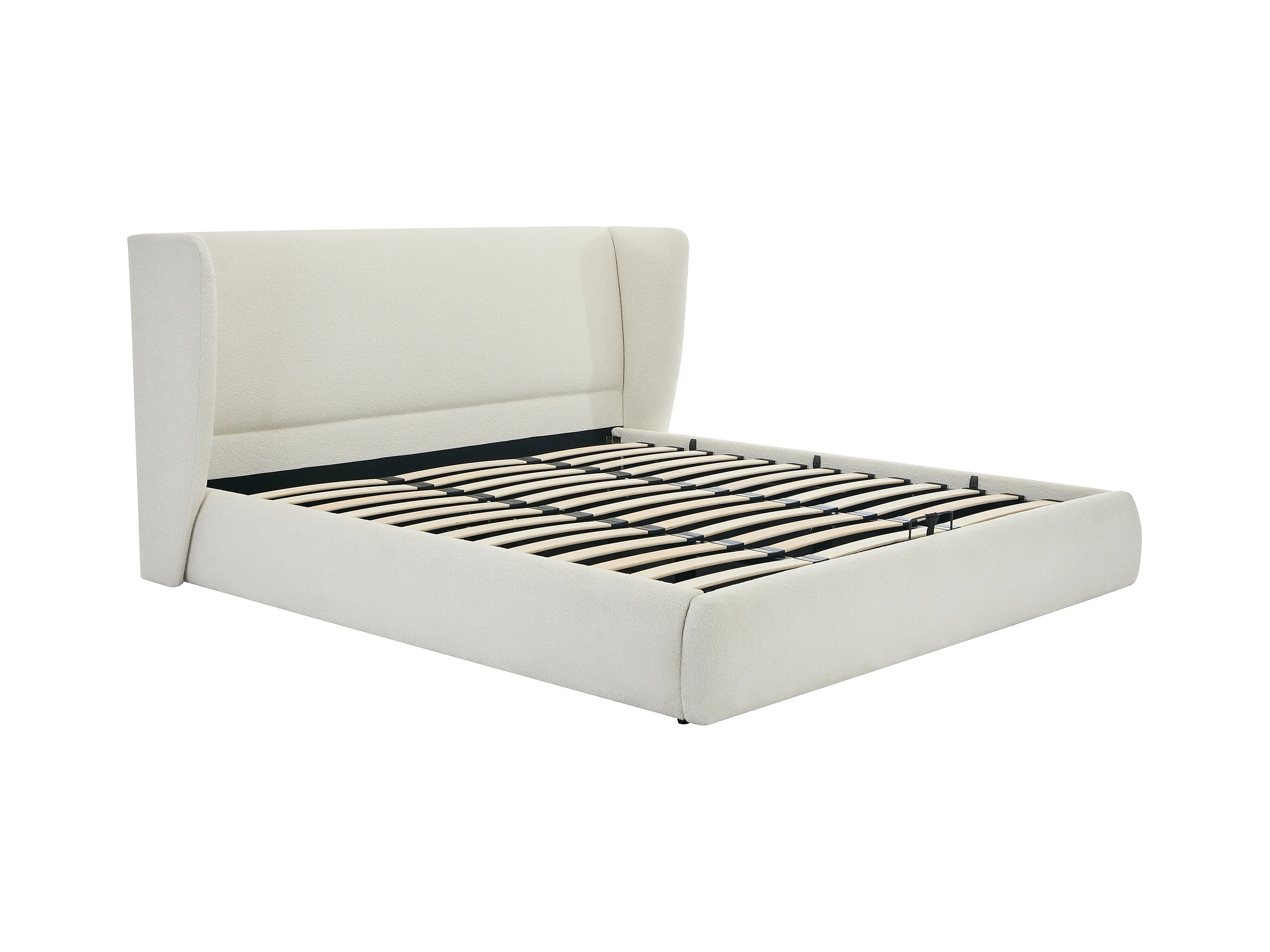 Lit coffre 140 x 190 cm - Tissu bouclette - Crème - CORTAGA