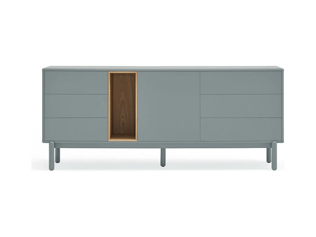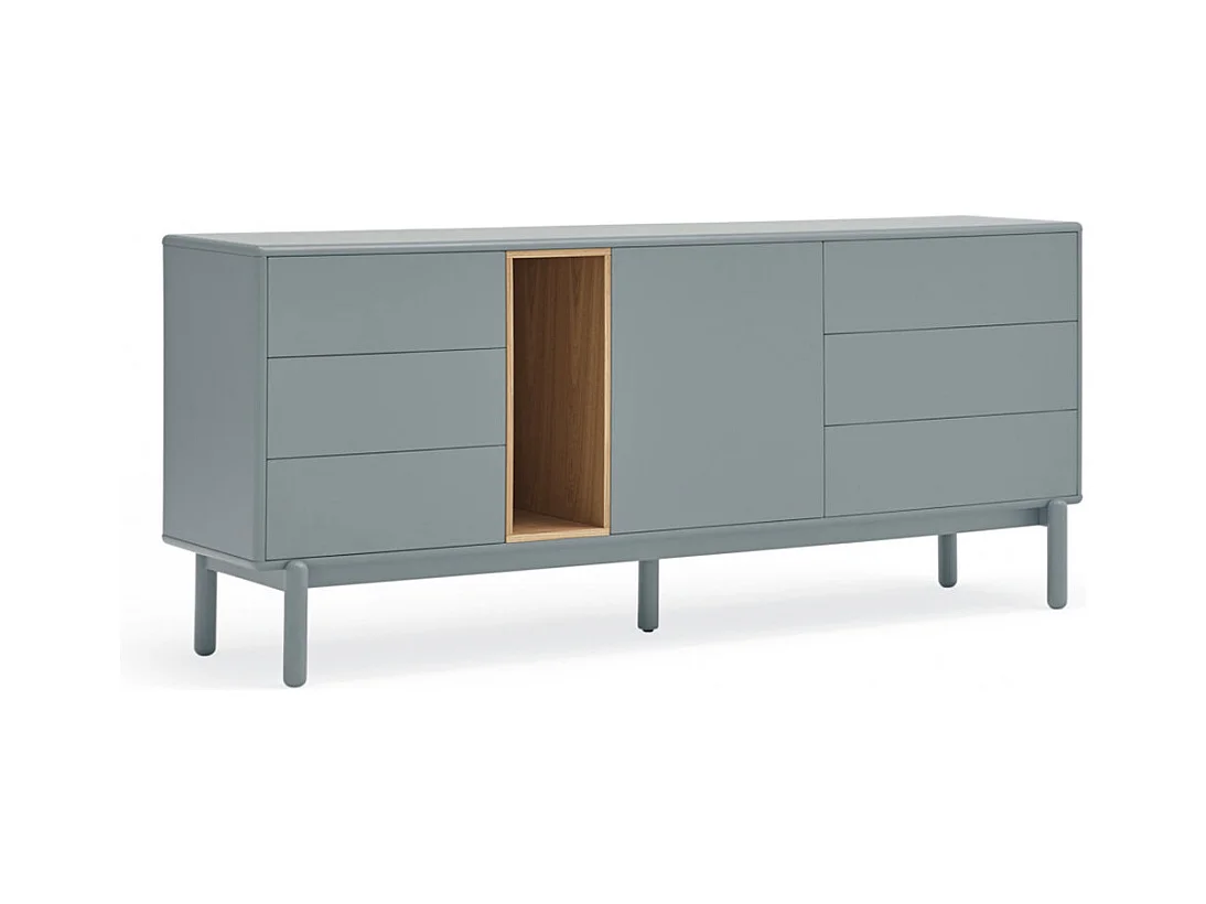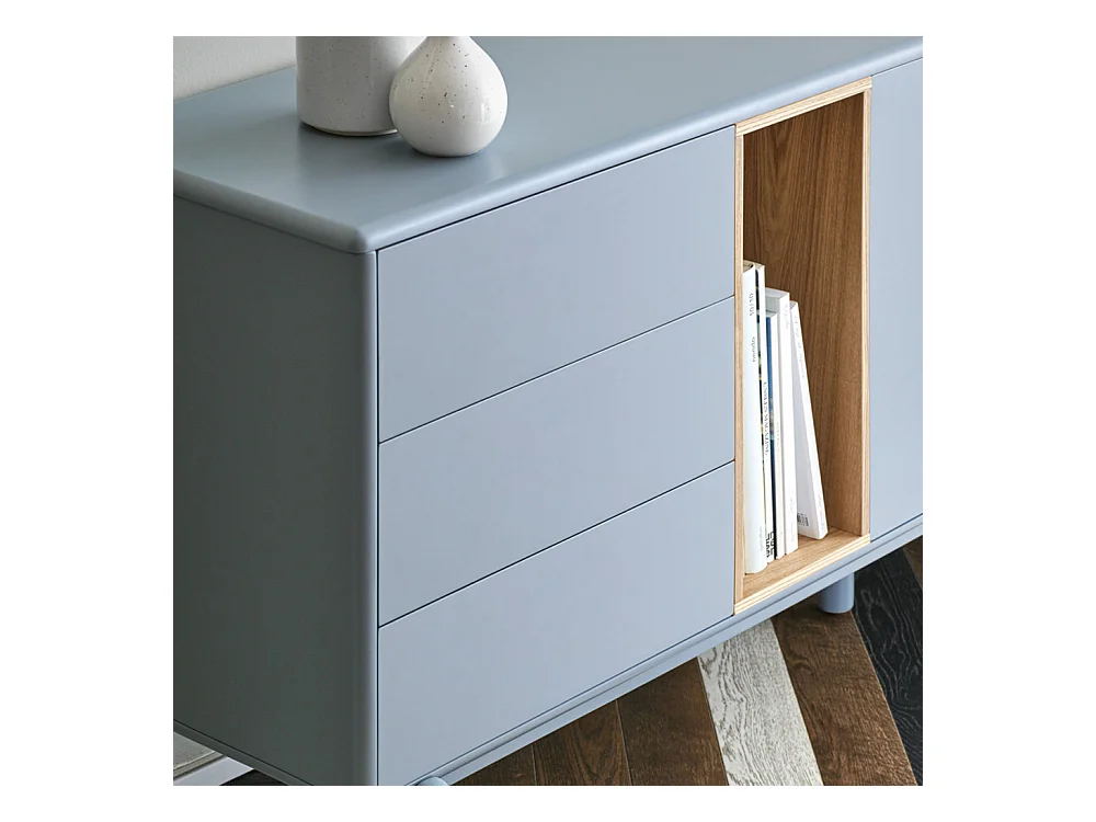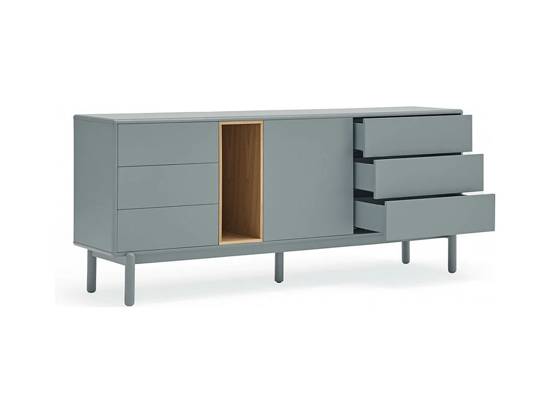 Corvo - Buffet 1 porte 6 tiroirs en bois L180cm : Couleur - Gris clair