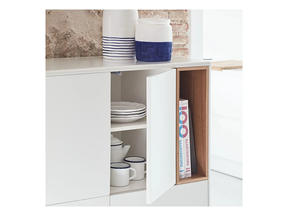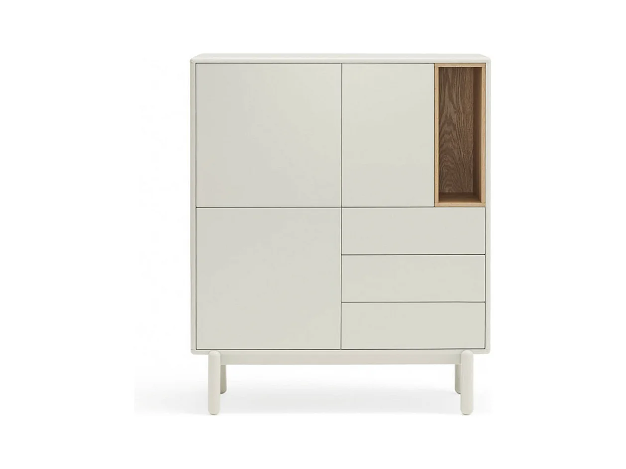Corvo - Buffet haut 3 portes 3 tiroirs en bois L100cm - Blanc