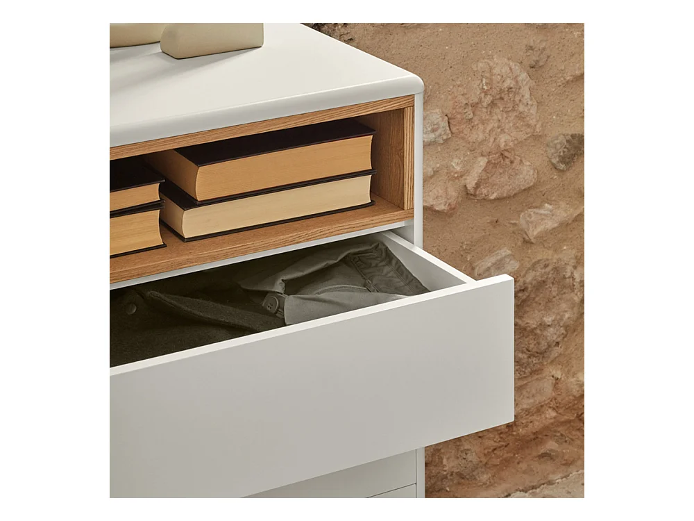 Corvo - Commode 7 tiroirs 1 niche en bois L120xH90cm - Blanc