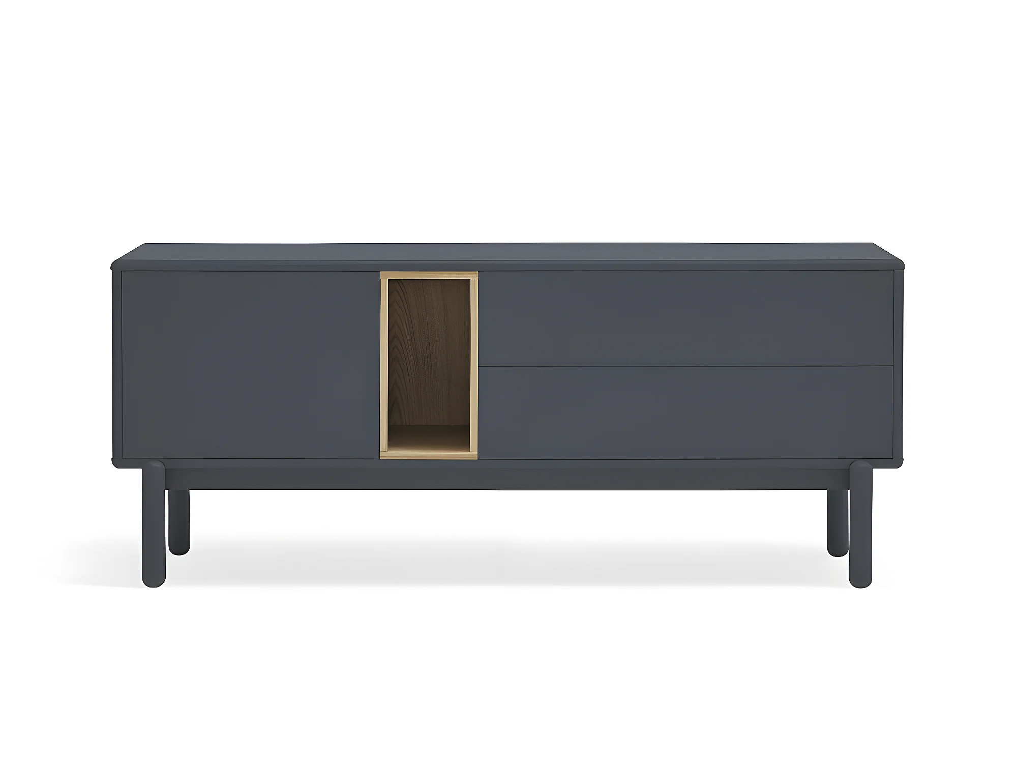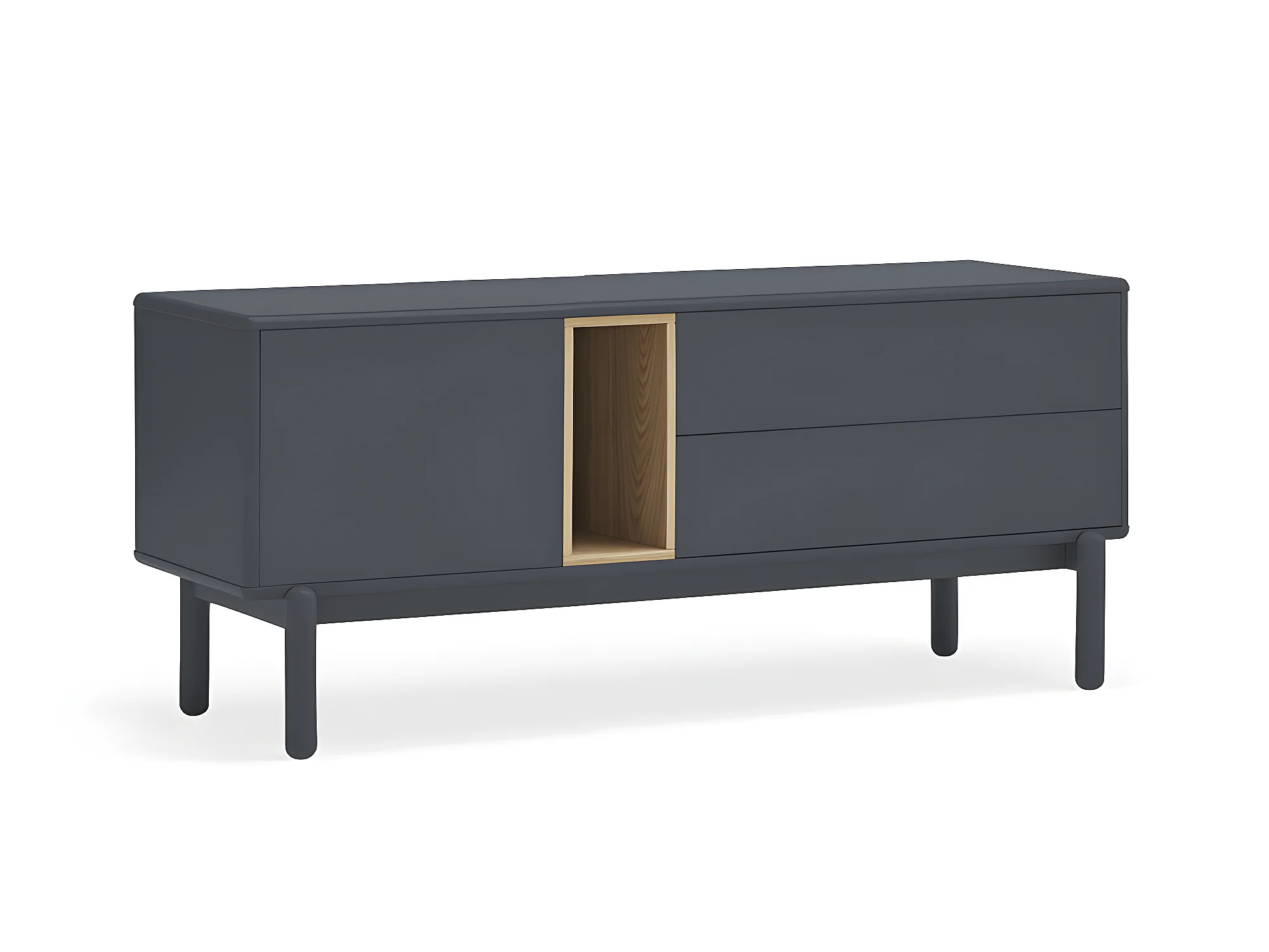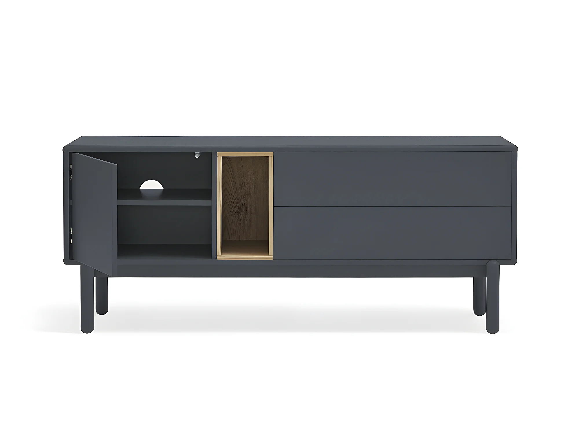 Corvo - Meuble tv 1 porte 1 niche et tiroir en bois L140cm - Gris anthracite