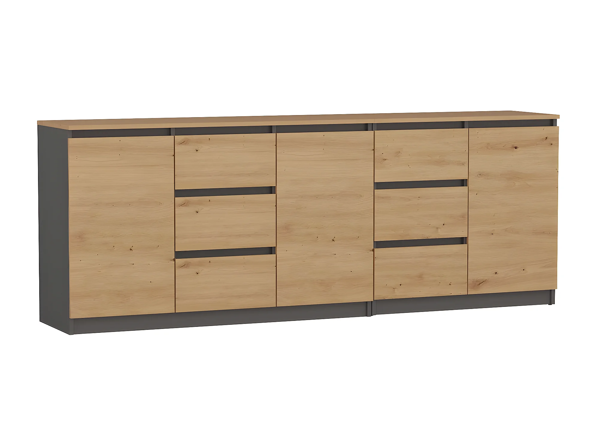 COSTI - Buffet long 3 portes + 6 tiroirs - 200x40x75 cm - Meuble de rangemnt salon salle à manger