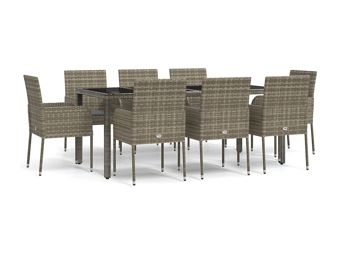 Cotati Ensemble à manger de jardin 9 pcs coussins gris résine tressée