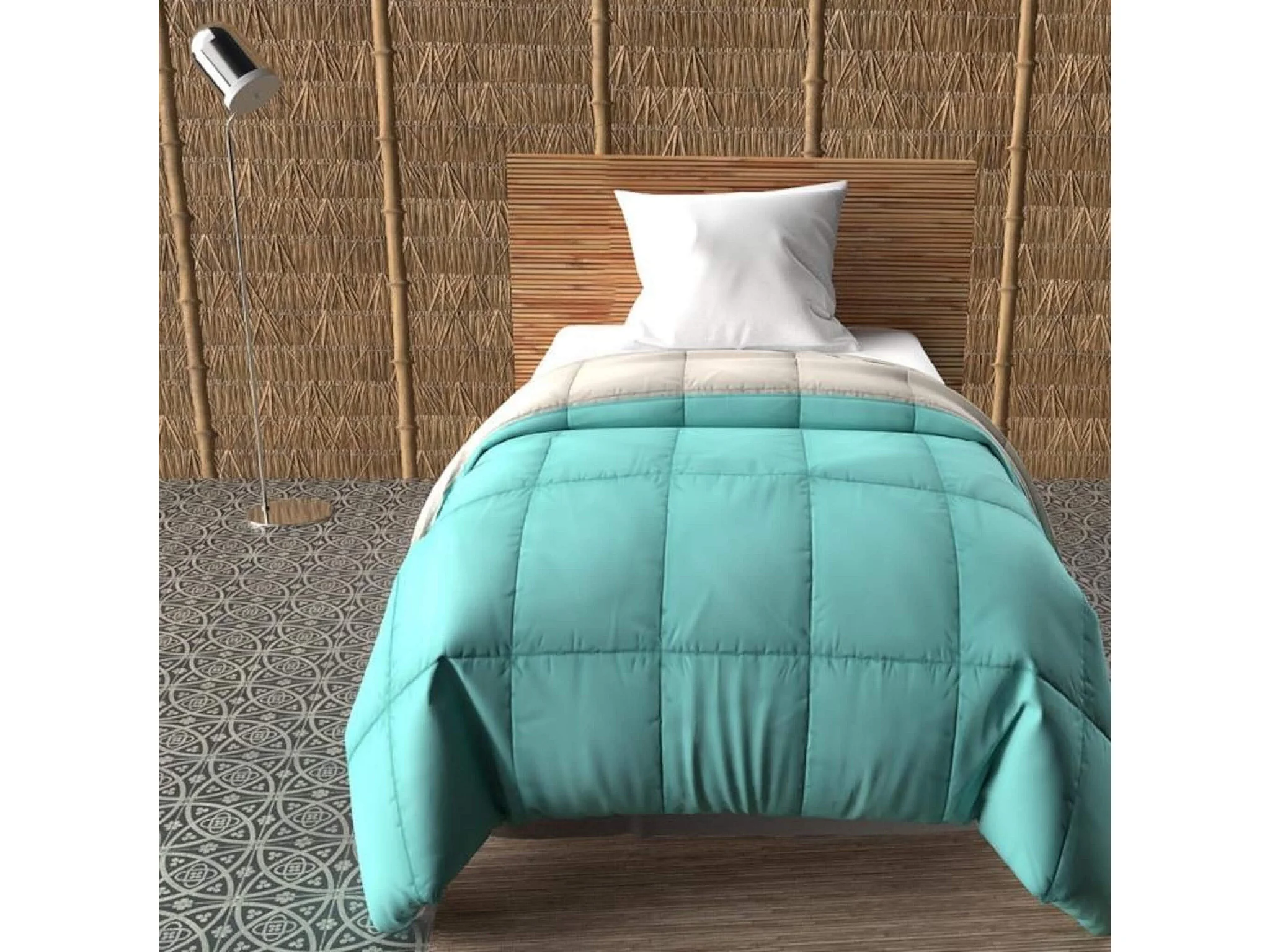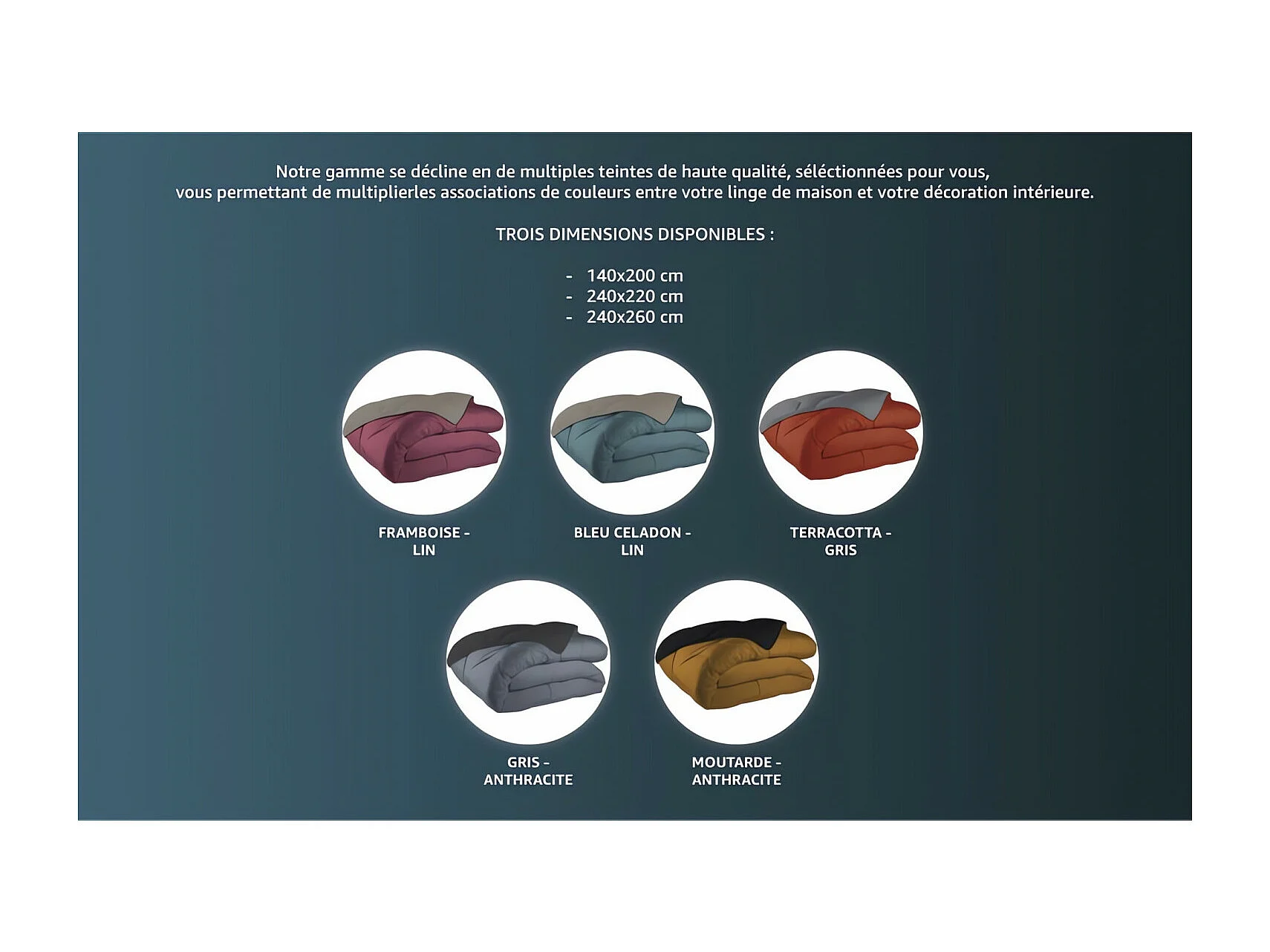 Couette bicolore bleu et lin mi-saison 350g 240x220 cm
