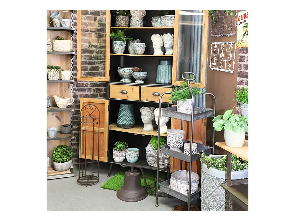 Cache-pot rond en ciment vieilli bleuté et cuivréØ.14 x Ht.13 cm