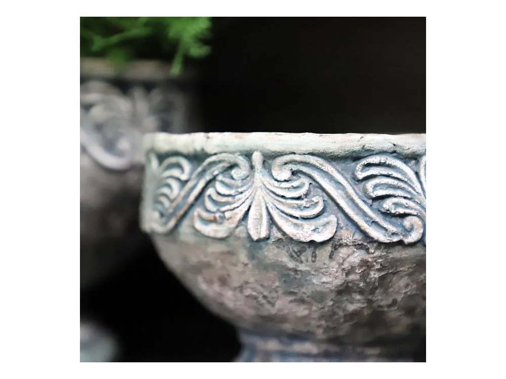 Jardinière ovale en ciment vieilli bleuté L.19 x l.11 x Ht.11cm