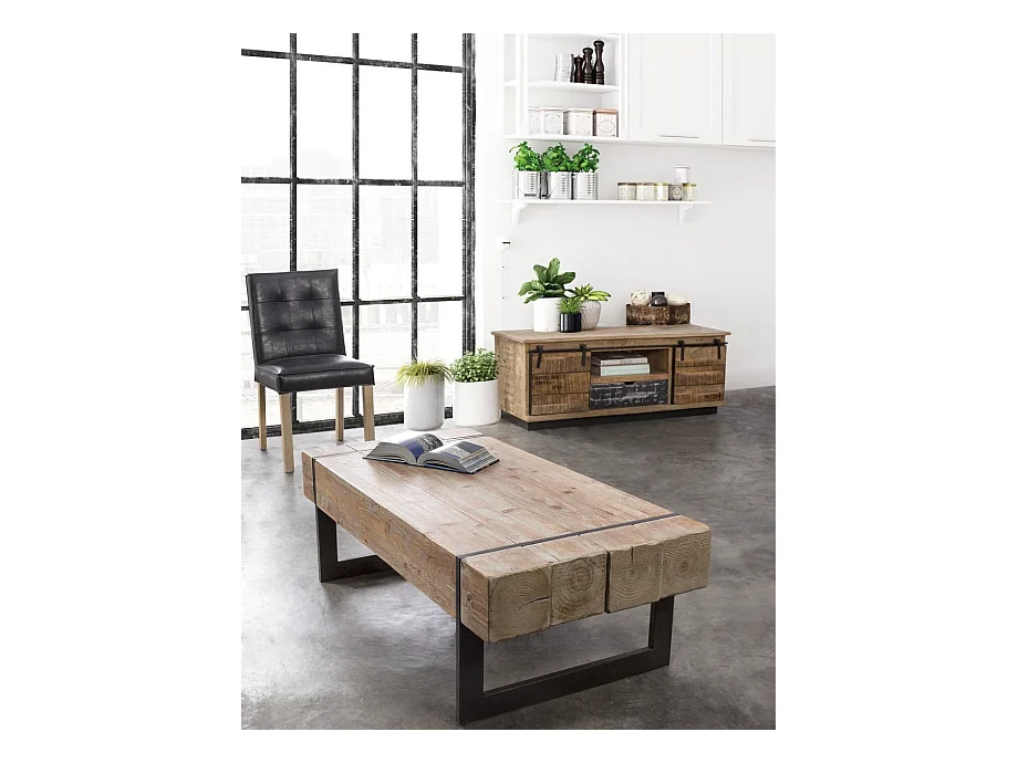 COURCHEVEL - Table Basse Bois Naturel avec Piètement Acier