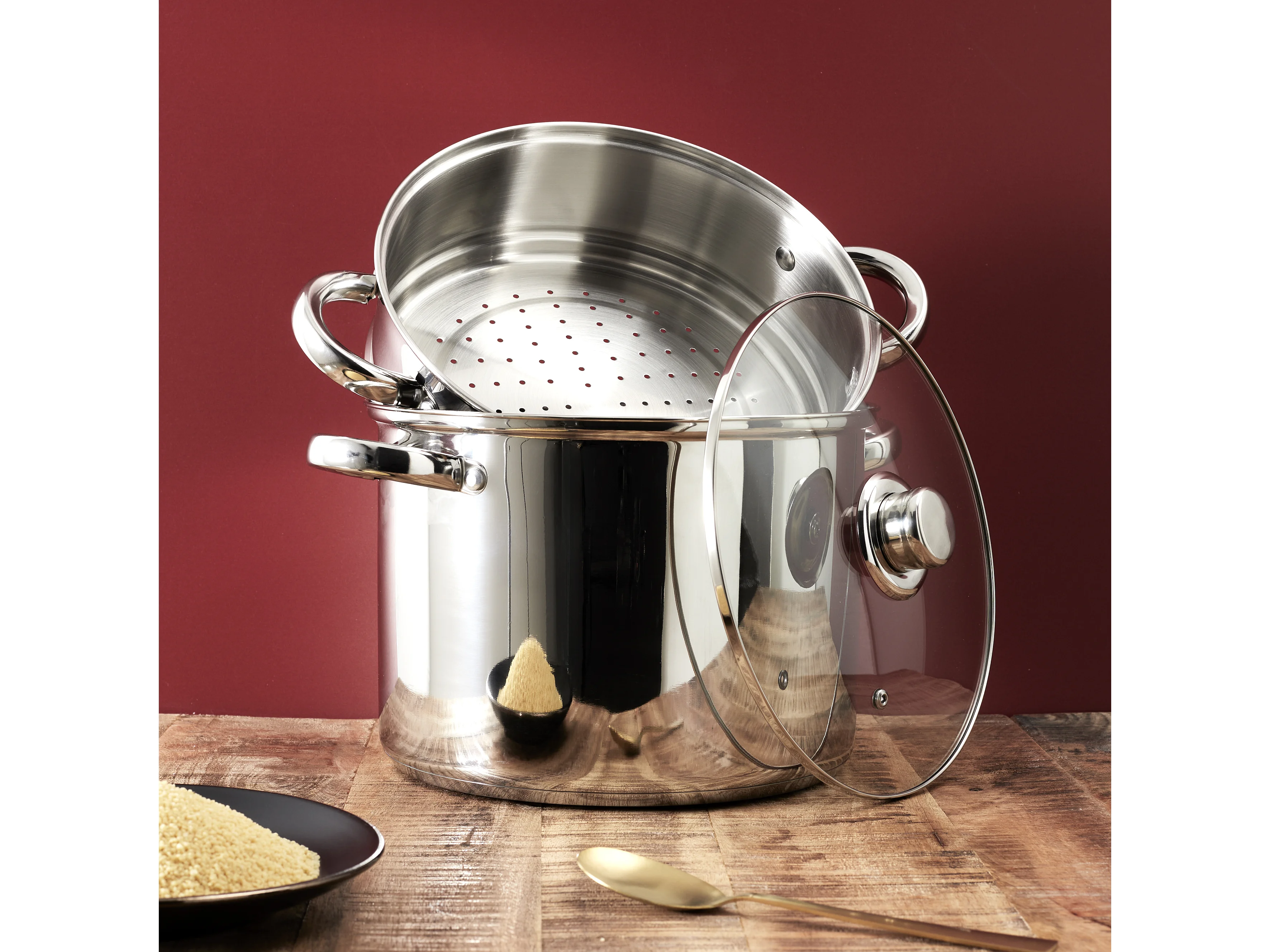 Couscoussier 2 étages 8L avec couvercle en verre pour induction