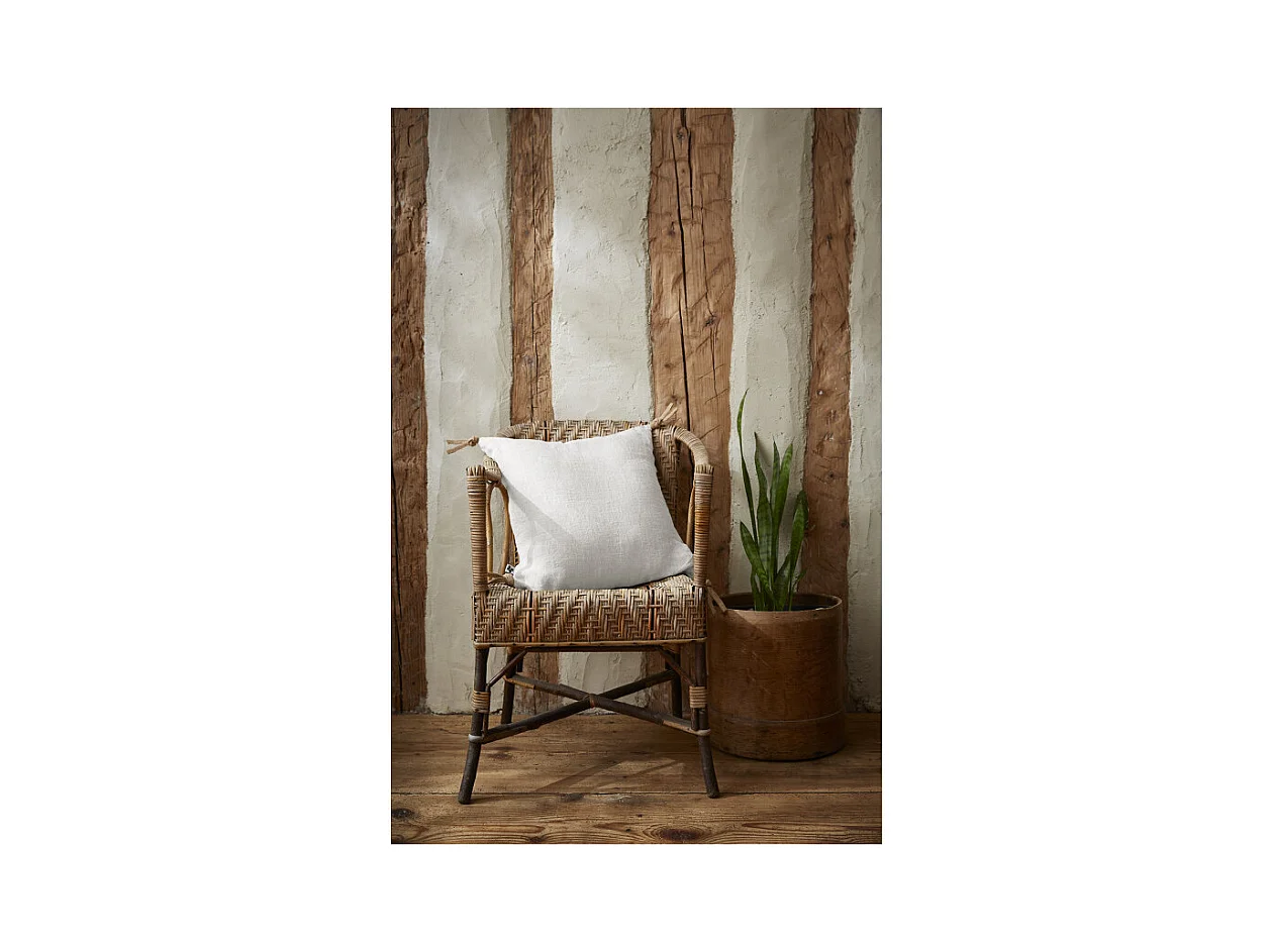 Coussin 45 x 45 cm en lin lavé blanc avec 4 nouettes en jute - LUISA